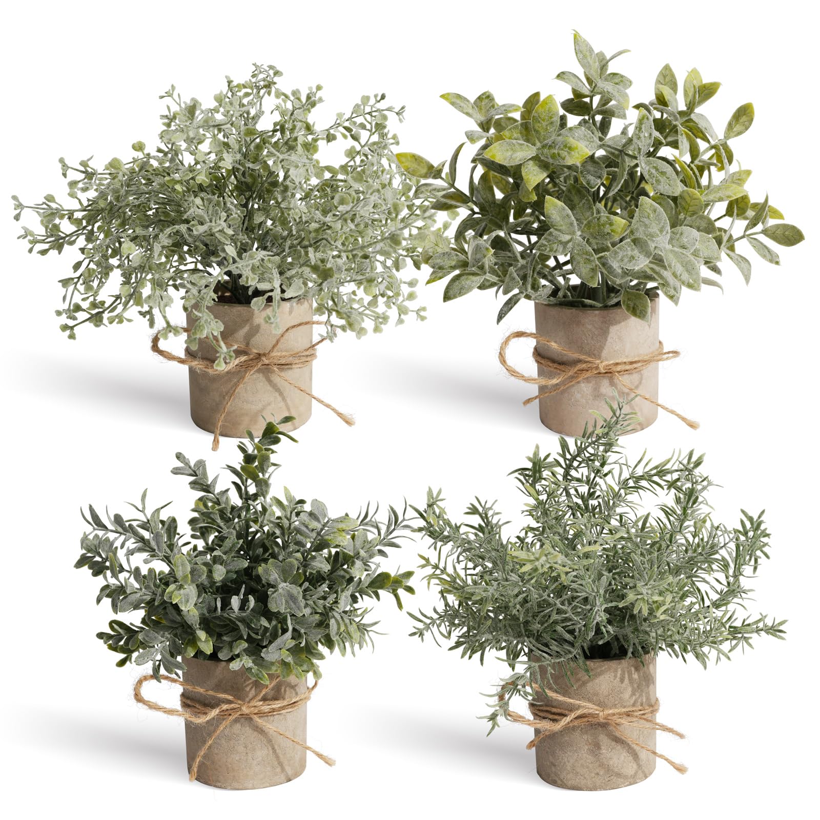 PENGYEE 4Pcs Small Fake Plant for Home Decor, Artificial Plants Indoor for Shelf Decor, Small Artificial Plants in Pots for Kitchen Bathroom Laundry|Home & Garden