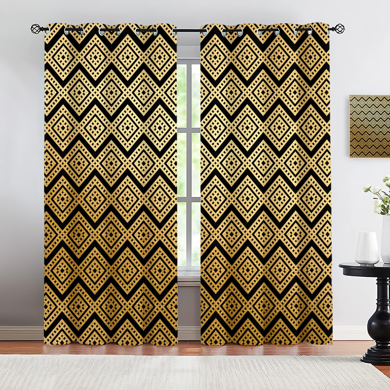 HGKDHK Wavy Stripes Curtains Black and Gold Geometry Curtains Modern Simple Symmetrical Pattern Window Treatment Grommet Insulated Drapes for Bedroom|Home & Garden