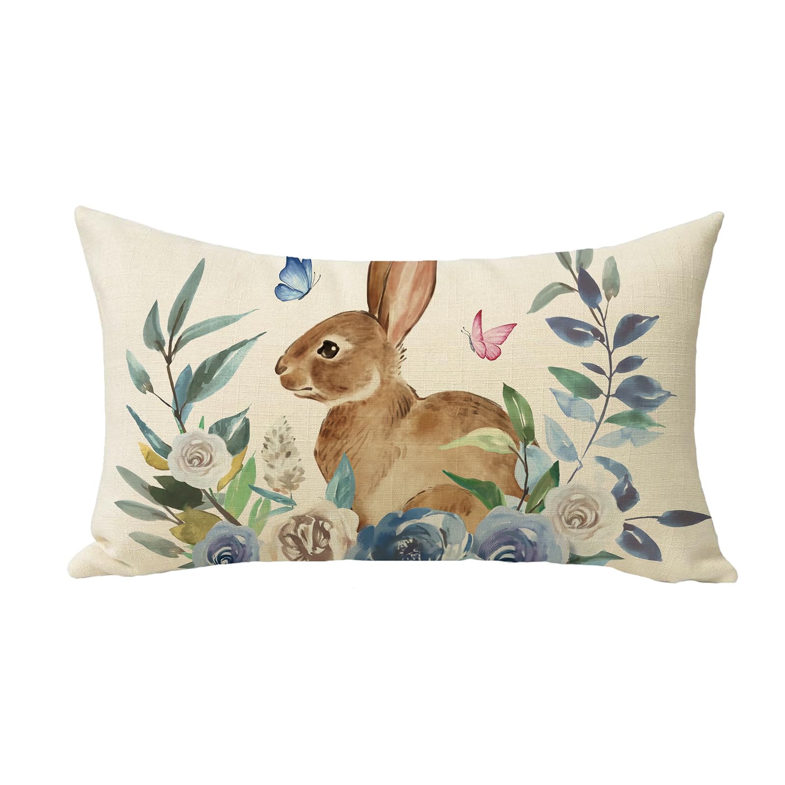 Fjfz Easter Bunny Lumbar Decorative Throw Pillow Cover 12 x 20, Rectangular Cute Rabbit Rose Flower Spring Outdoor Home Decor, Spring Blue Floral|Home & Garden