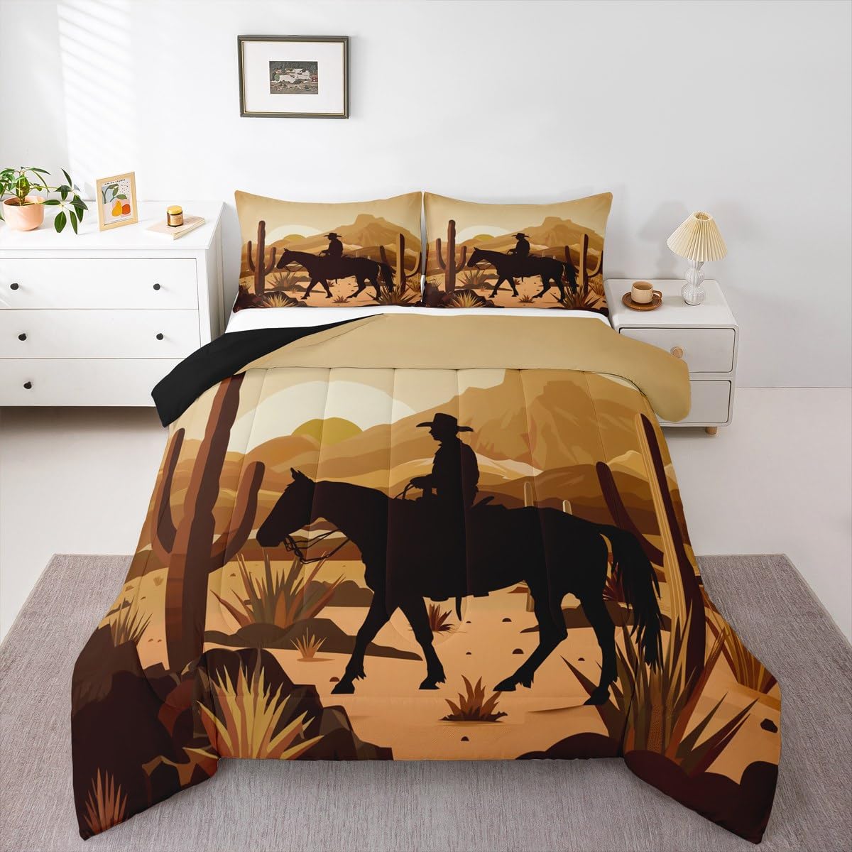 Homewish Western Comforter Set Queen Size,Cowboy Wild Horse Desert Cactus Bedding Set for Women Adult,Natural Sunset Scenery African Luxury Bed Duvet|Home & Garden