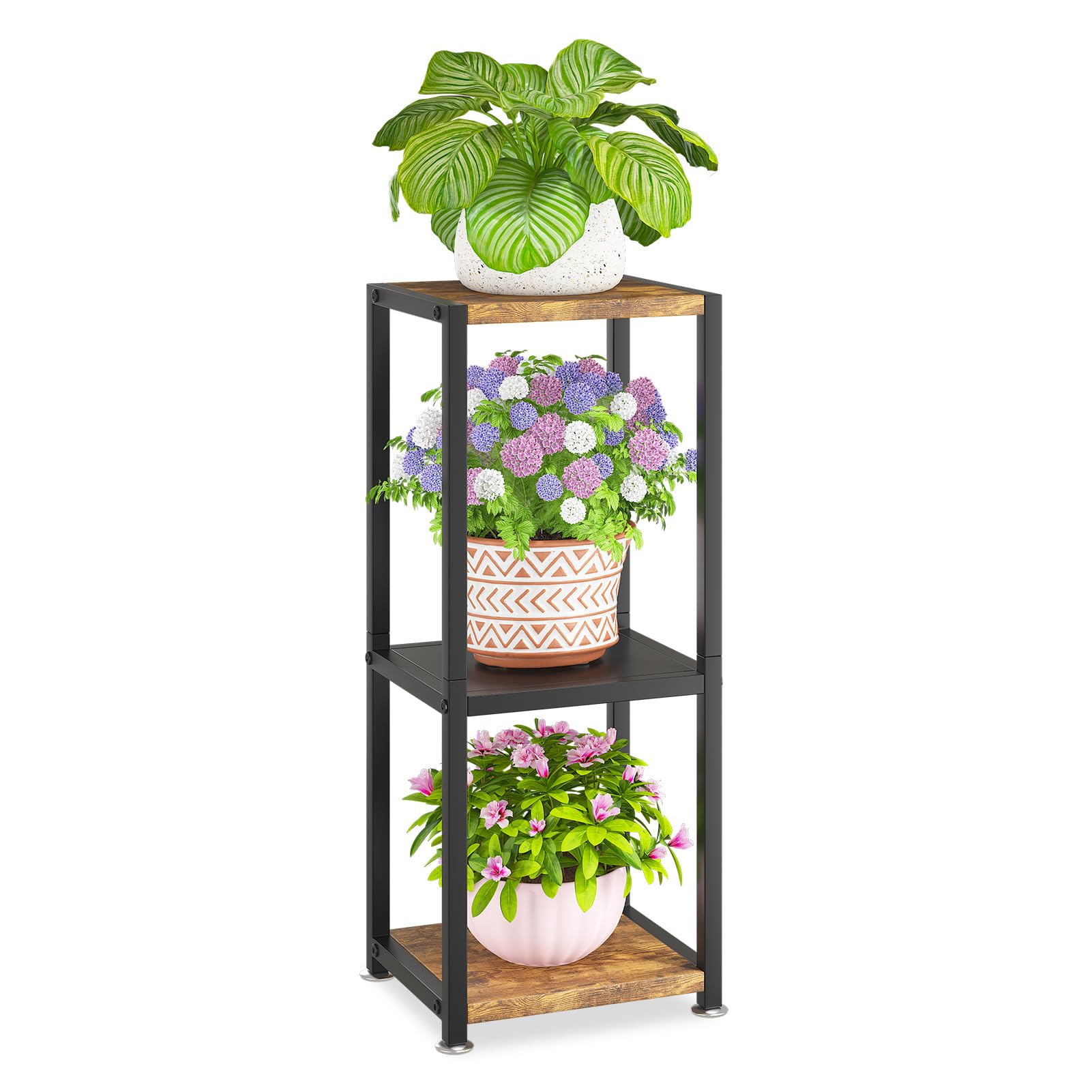 KMOTASUO 3 Tier Tall Plant Stands Indoor, 31 Inch Metal Wood Corner Plant Stand for Indoor Plants, Square Flower Pot Holder Shelf Display Rack for|Home & Garden
