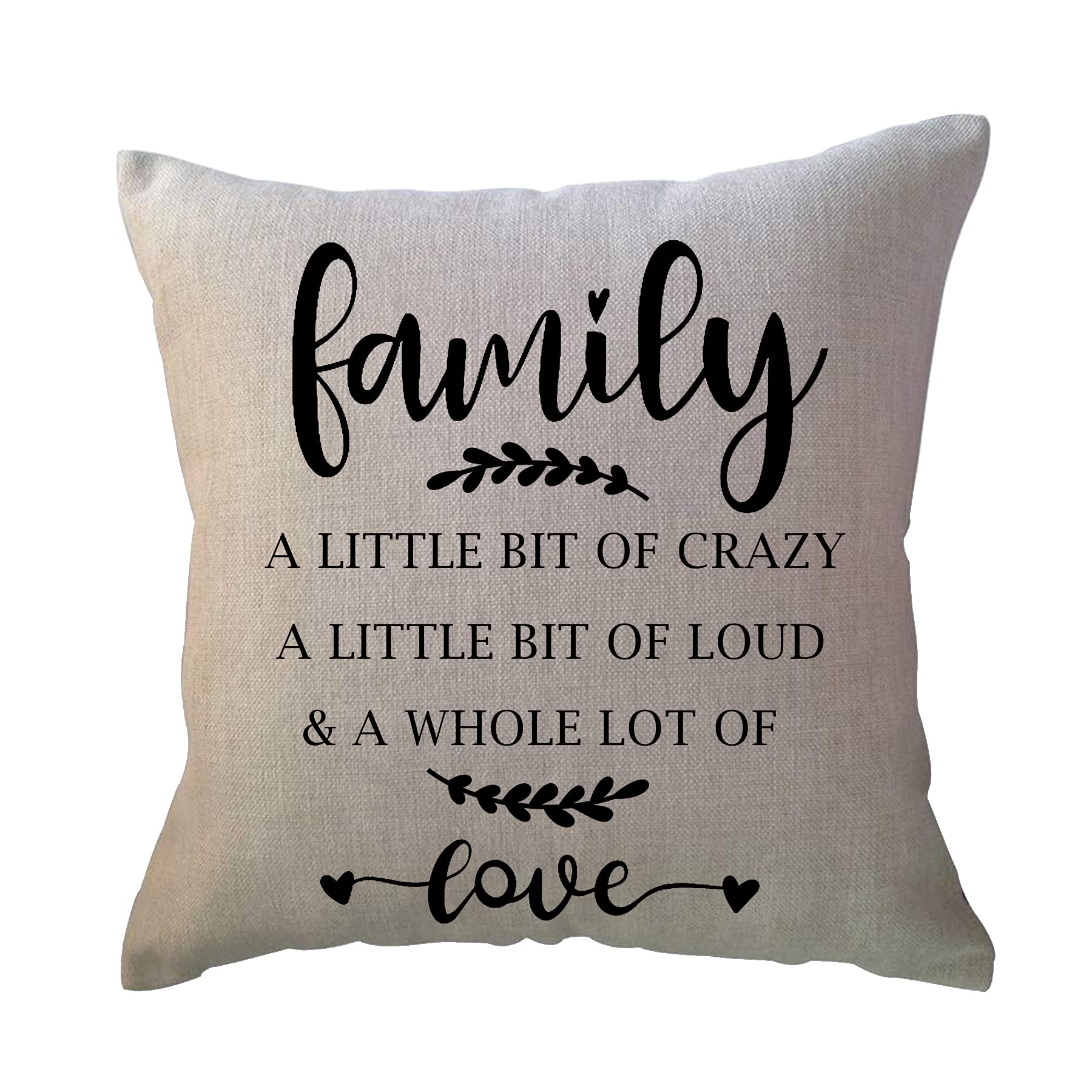 Home Quotes Throw Pillow “Family a Little bit of Crazy/a Little bit of Loud&a Whole lot of Love ” Farmhouse Decorative Cushion Cover 18 x 18 Inch|Home & Garden