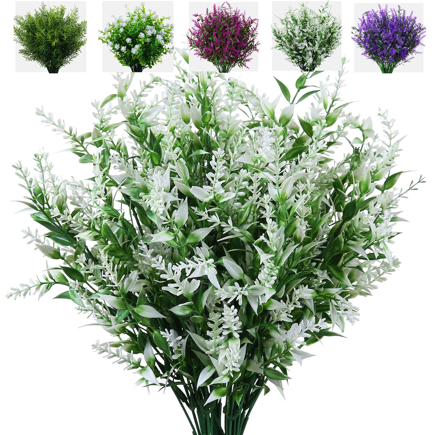 XLFAQXM 8 Pack Artificial Plants Flowers Grass Shrubs No Fade Faux Plastic Flowers Outdoor for Vases Farmhouse Garden Porch Patio Office Indoor|Home & Garden