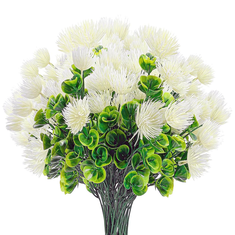 AA BADBABY 8pack Artificial Outdoor Plants Flowers UV Resistant Plastic Flowers Set Spring Garden Decor (8, White)|Home & Garden
