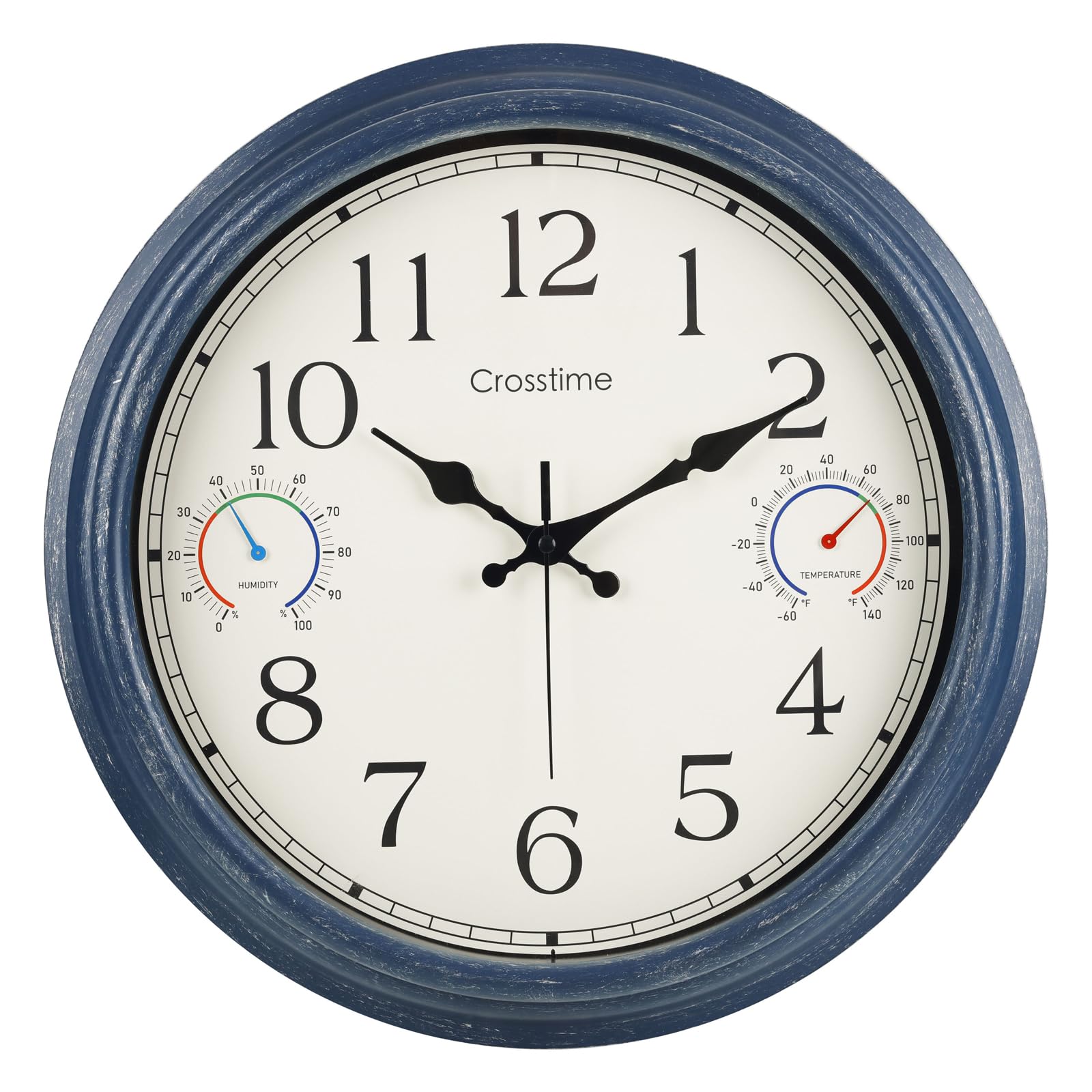 Crosstime 16 Inch Large Outdoor Clock with Thermometer & Hygrometer – Vintage Blue Coastal Decor Waterproof Wall Clock for Patio, Pool, Garden,|Home & Garden
