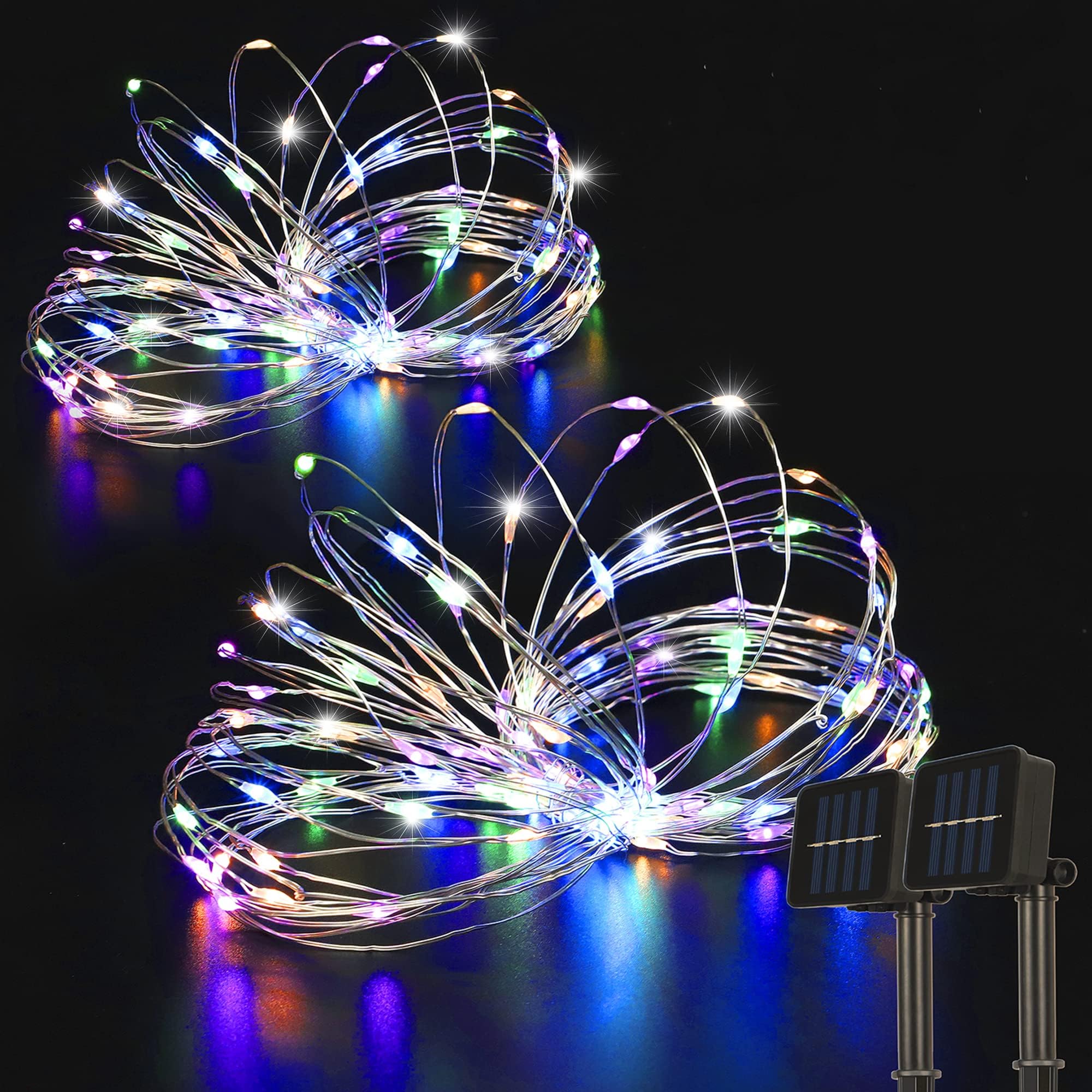 BEEWIN 2 Pack Solar Fairy Lights - 33ft 100L Multicolor Twinkle Lights with 8 Modes, Firefly String Copper Wire, for Christmas, Bedroom, Patio,|Home & Garden