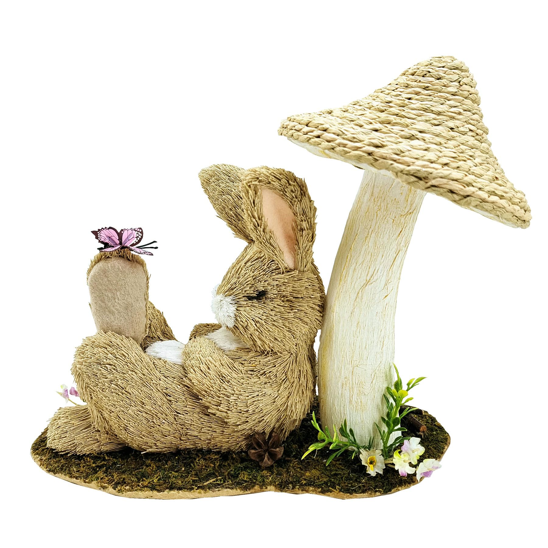 naturevibe 8.9 Inches Sisal Bunny Easter Decor,Natural Easter Bunny Resting Under Mushroom for Centerpieces for Tables,Decorative Farm Animals Bunny|Home & Garden
