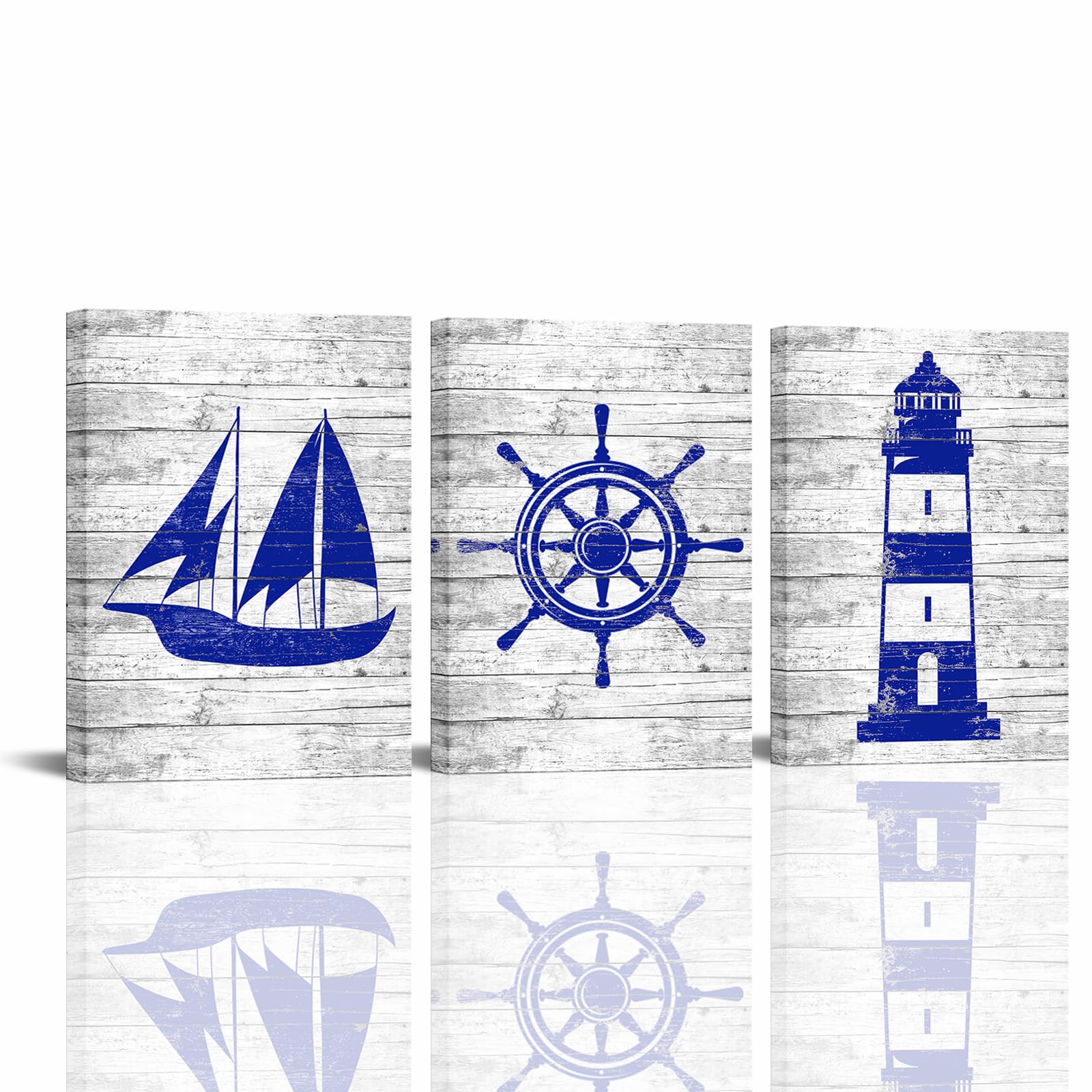 Vefacaiyo Nautical Wall Decor Lighthouse Sailboat Rudder Picture Wall Decor Ocean Theme Canvas Paintings Wall Art for Home Bathroom Living Room Office|Home & Garden