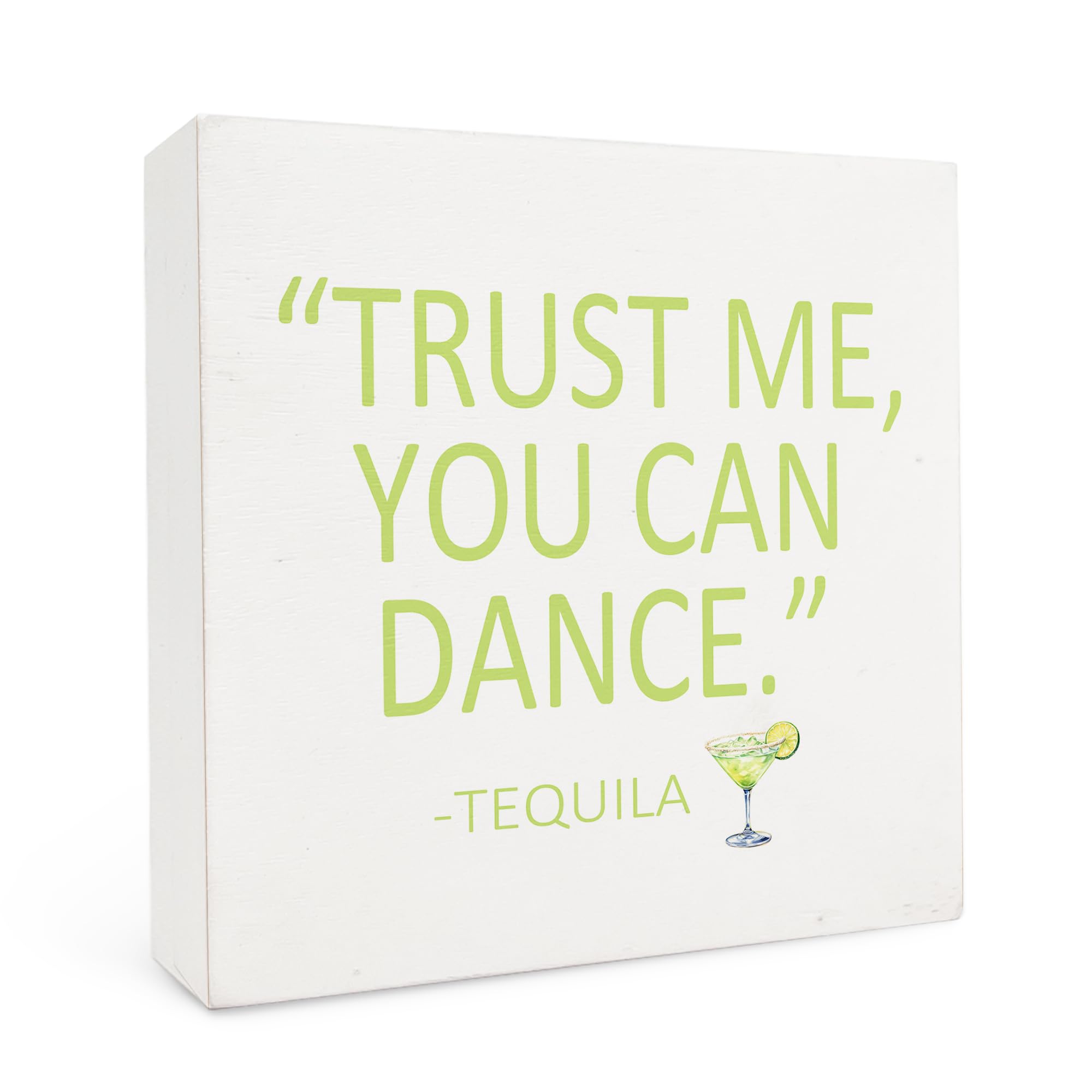 FHUGX Funny Tequila Cocktail Wooden Box Sign 5x5 Inch,Trust Me You Can Dance Cocktail Box Sign For Bar Desk Dorm Home Kitchen Shelf Table Decor,Bar|Home & Garden