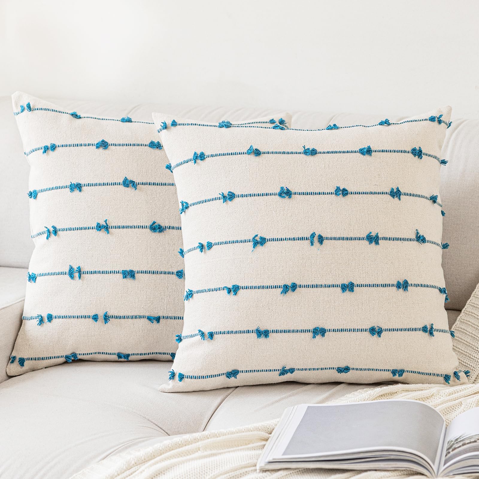 YEENAASY Boho Throw Pillow Covers 16x16 Set of 2 Modern Farmhouse Decorative Cushion Case Tufted Square Pillows Cover Neutral Pillow Cases Accent|Home & Garden