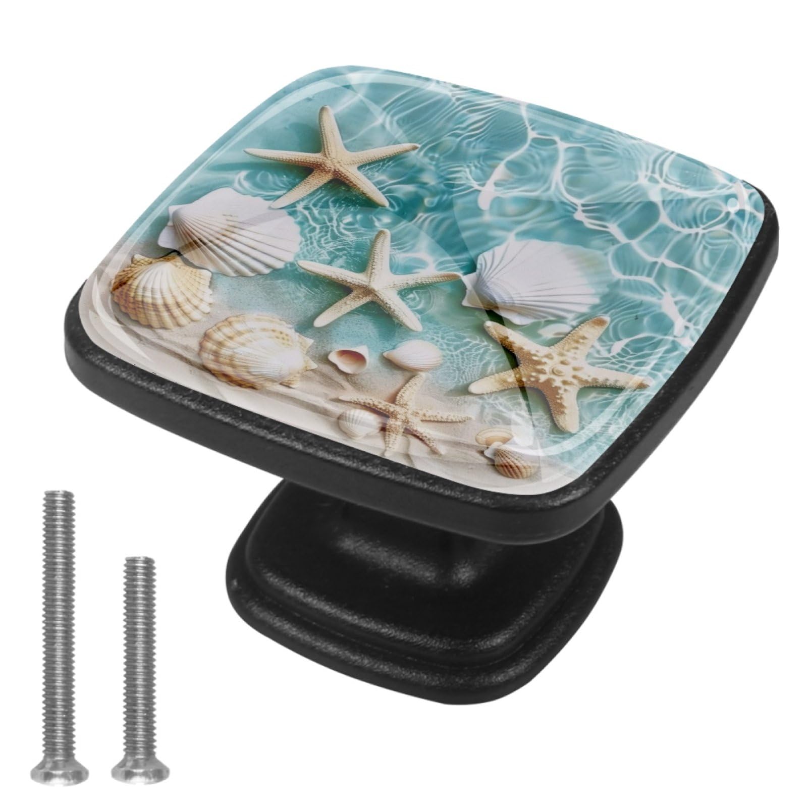 Anna Cowper 4 Pack Cabinet Knobs Black Drawer Knobs, Beach Starfishes Shell Decorative Square Knob Single Hole Cabinet Hardware for Dresser Drawers|Home & Garden