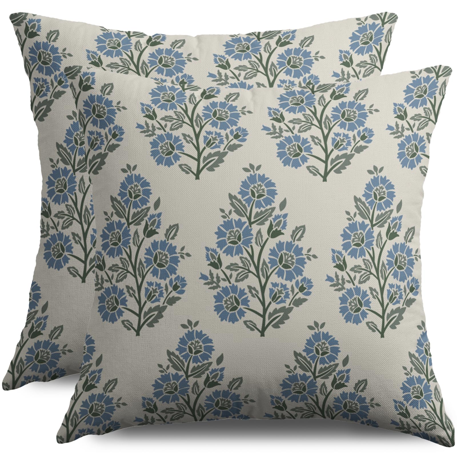 Smozenith Blue Floral Pillow Covers 20X20 Inch Set of 2, Blue Green Block Print Style Pattern Spring Summer Decorative Throw Pillow Covers Outdoor|Home & Garden