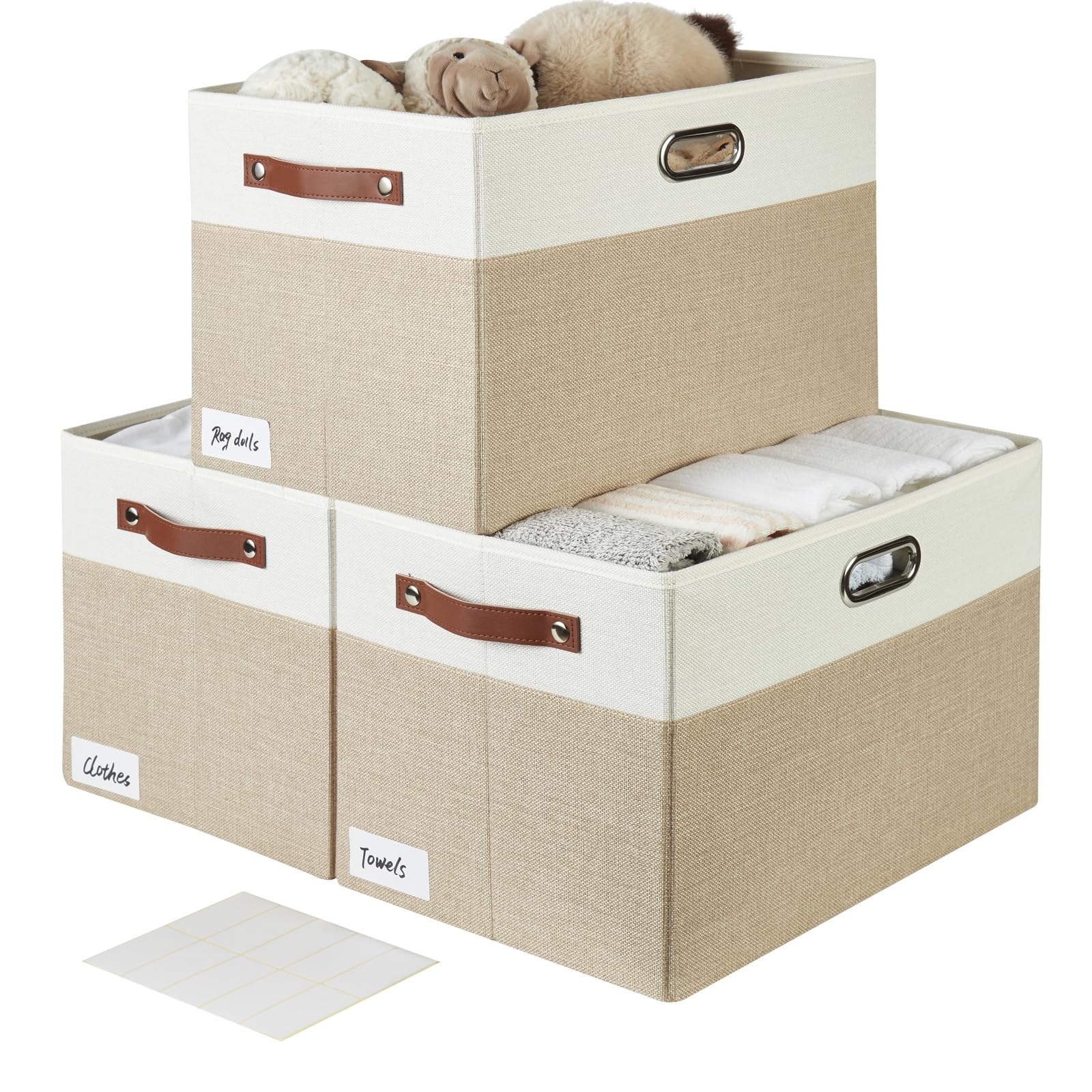 Bagnizer Large Collapsible Fabric Storage Bins with 3 Handles, Foldable Organizer Baskets for Closet, Shelves, Living Room | 3 Pack, Durable PU &|Home & Garden