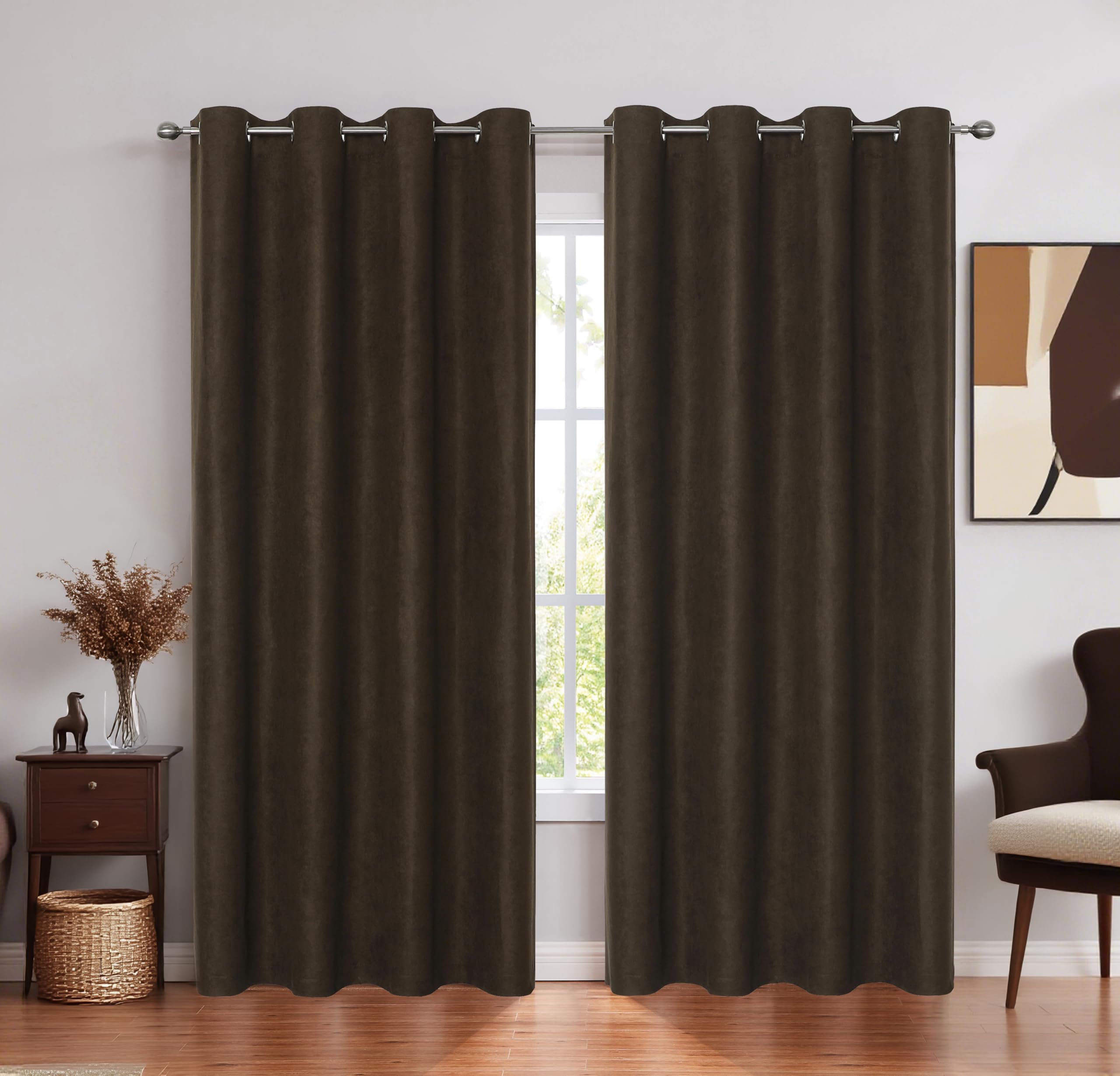 Rndall Coffee Brown Faux Suede Collections Room Darkening Curtains Noise Reducing, Energy Saving Room Darkening Window Curtains & Drapes for Bedroom,|Home & Garden