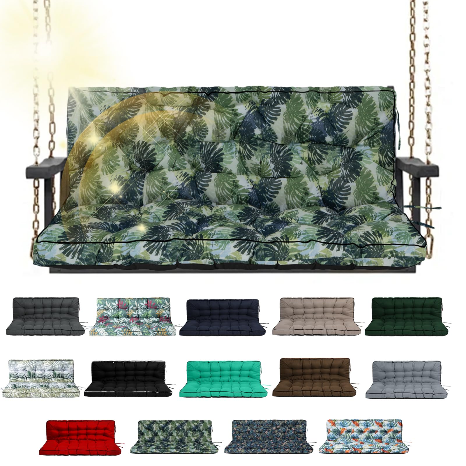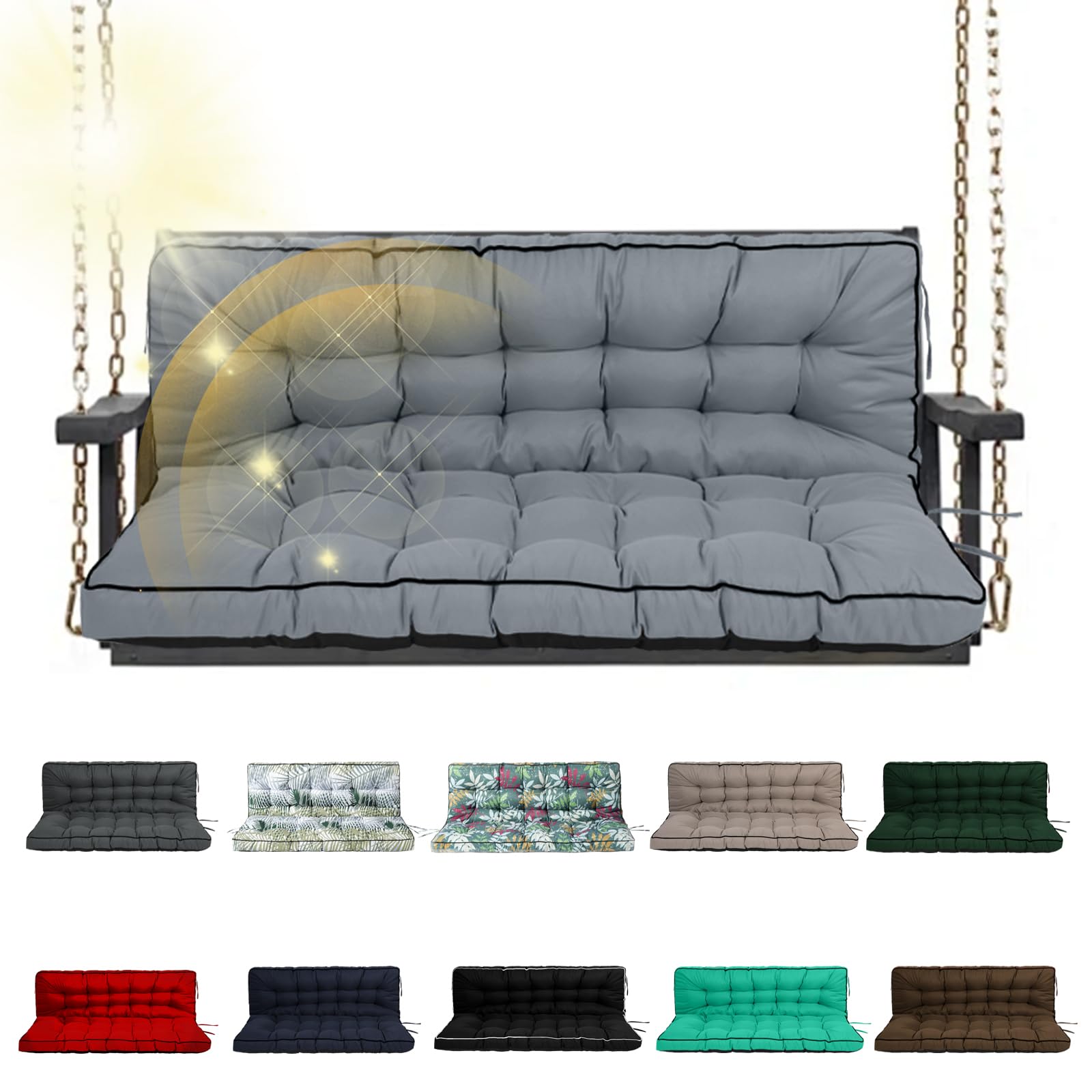 VKETU Porch Swing Cushion Three Seat, Waterproof Swing Cushions Replacement with Backrest, Outdoor Garden Furniture Patio 4" Thickened Cushions with|Home & Garden