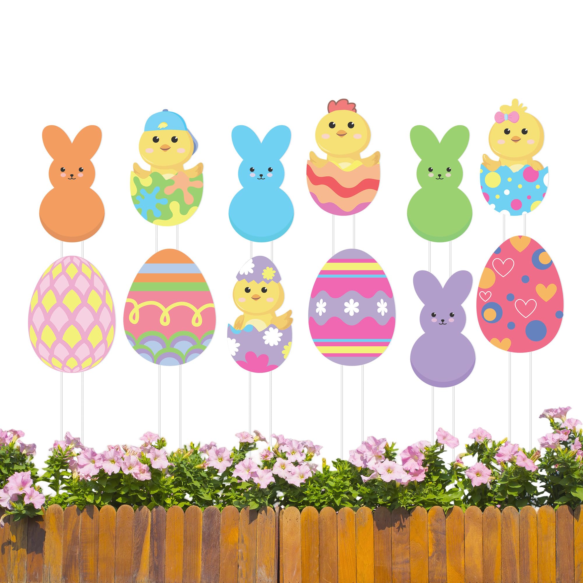 Iceyyyy 12 Pcs Easter Egg Planter Stakes-11 Inch Bunny Egg Chick Planter Stakes-Easter Yard Stakes Garden Signs for Home Plant Pot Party Supplies|Home & Garden