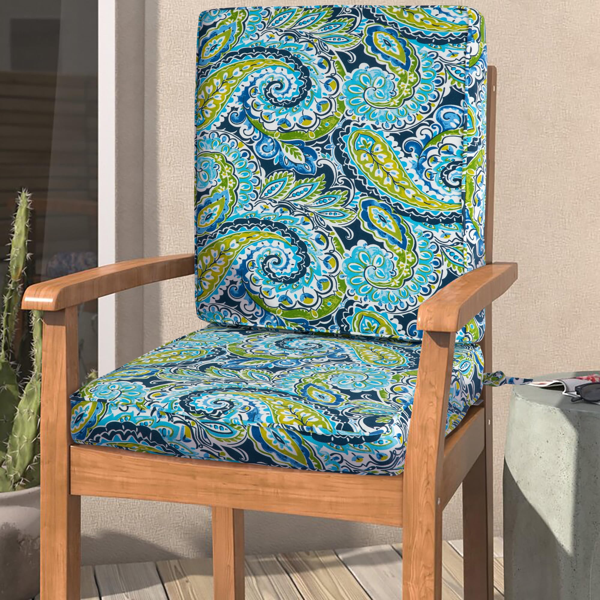 Magpie Fabrics Outdoor/Indoor High Back Square Corner Chair Cushion with Handle & Ties, Waterproof for Home Garden Balcony Patio Beach Swimming Pool,|Home & Garden