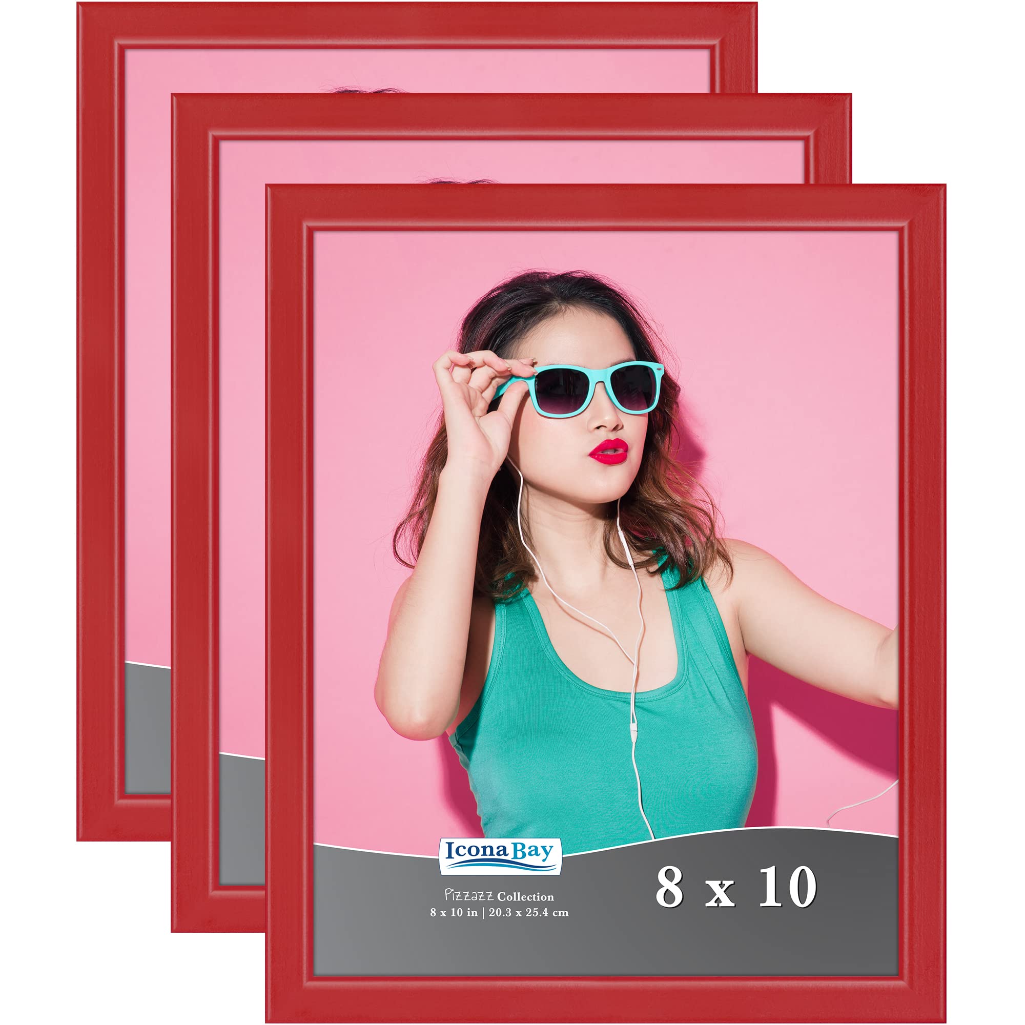 Icona Bay 8x10 Picture Frames (Red, 3 Pack), Colored Solid Wood Scandinavian Style Frames for Photo, Pizzazz Collection|Home & Garden