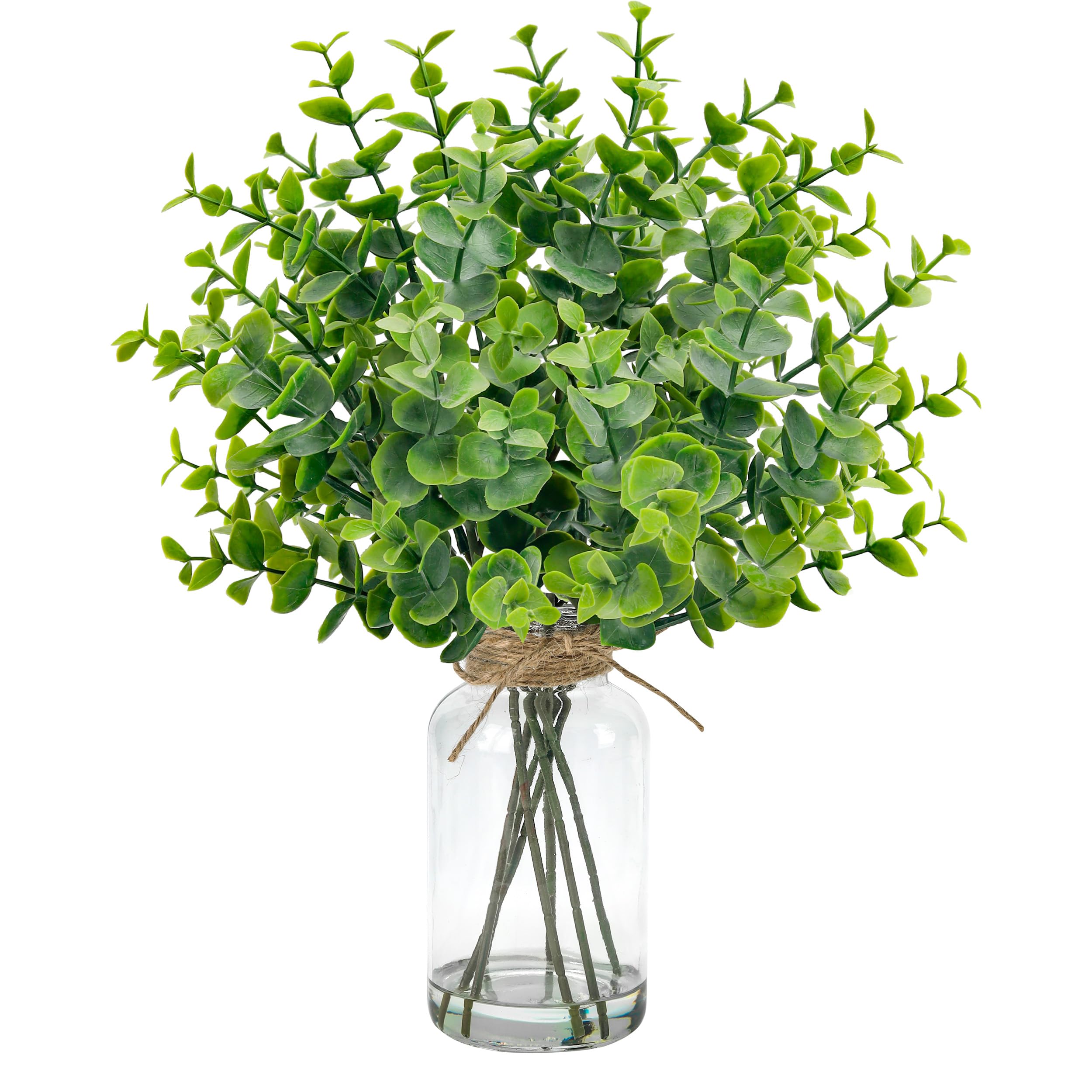 Der Rose 14.5" Fake Plants for Bathroom Decor Artificial Eucalyptus Stems in Clear Glass Vase with Faux Water for Office Desk Accessories Home Wedding|Home & Garden