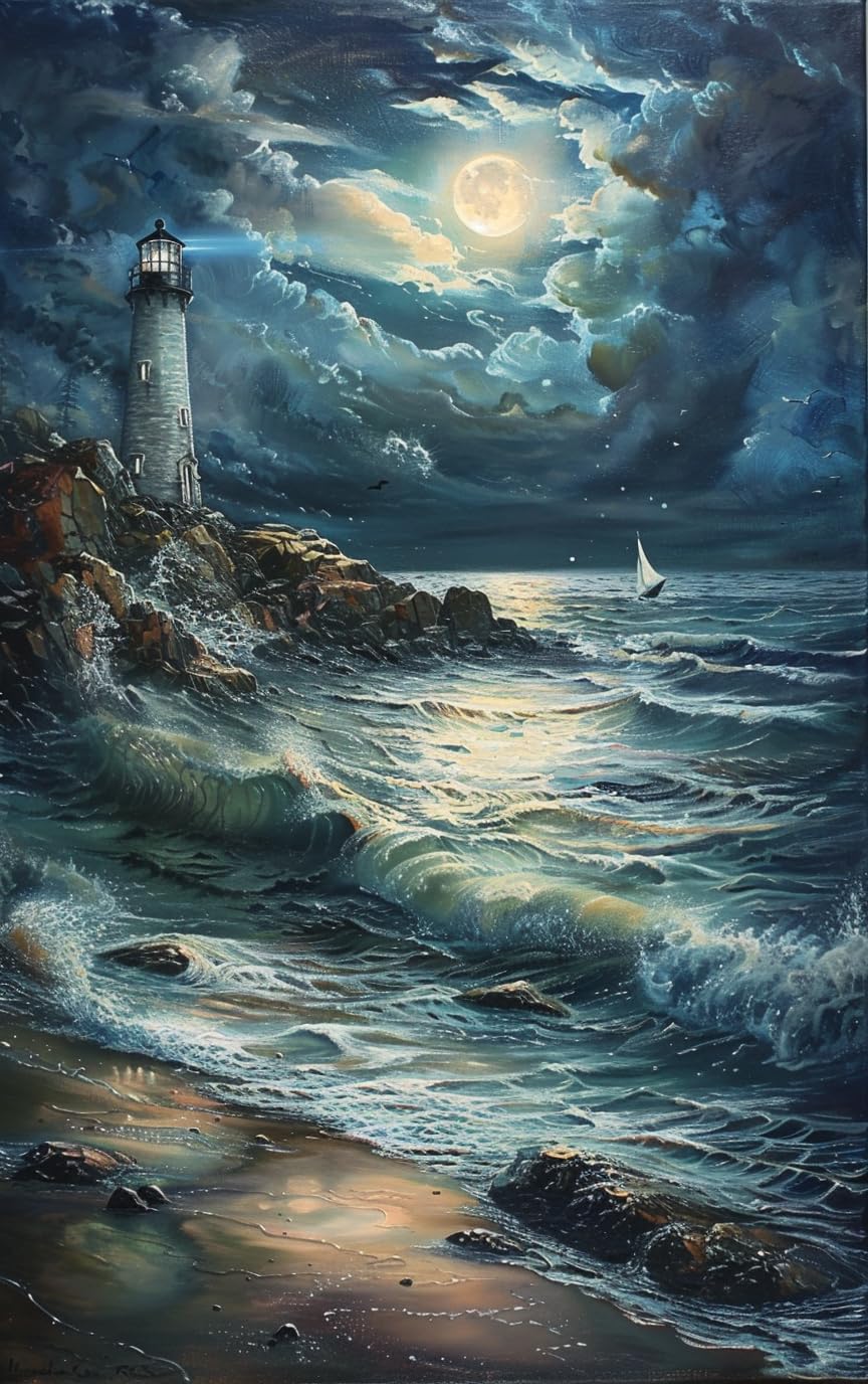 CDSASHCA Vintage oil painting lighthouse at night Wooden Hanging Board Signs Plaque,Home Bathroom,Bedroom,Yard Wall Art decoration,Classic Outdoor|Home & Garden