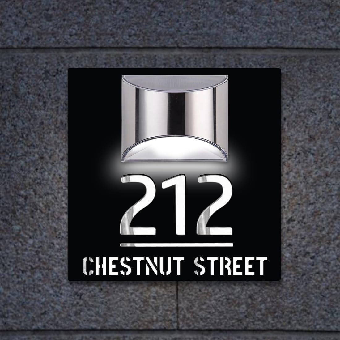 Personalized Modern Solar Light Up House Number Sign Custom House Address and Number Acrylic Plaque with Solar Light Light Address Sign Outdoor Solar|Home & Garden