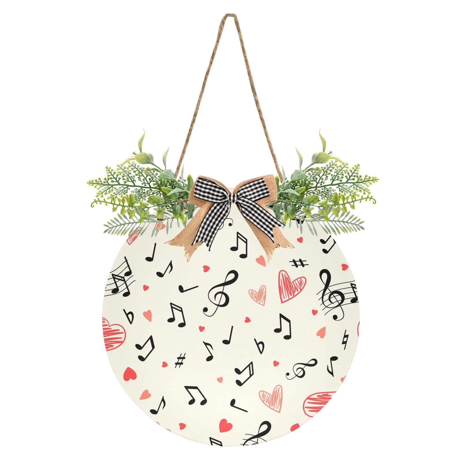 KOCOART Door Wreath Hearts Notes Music Rustic Farmhouse Hanging Front Door Sign Round Music Theme Wall Decoration for Home Porch Bedroom Office Garden|Home & Garden