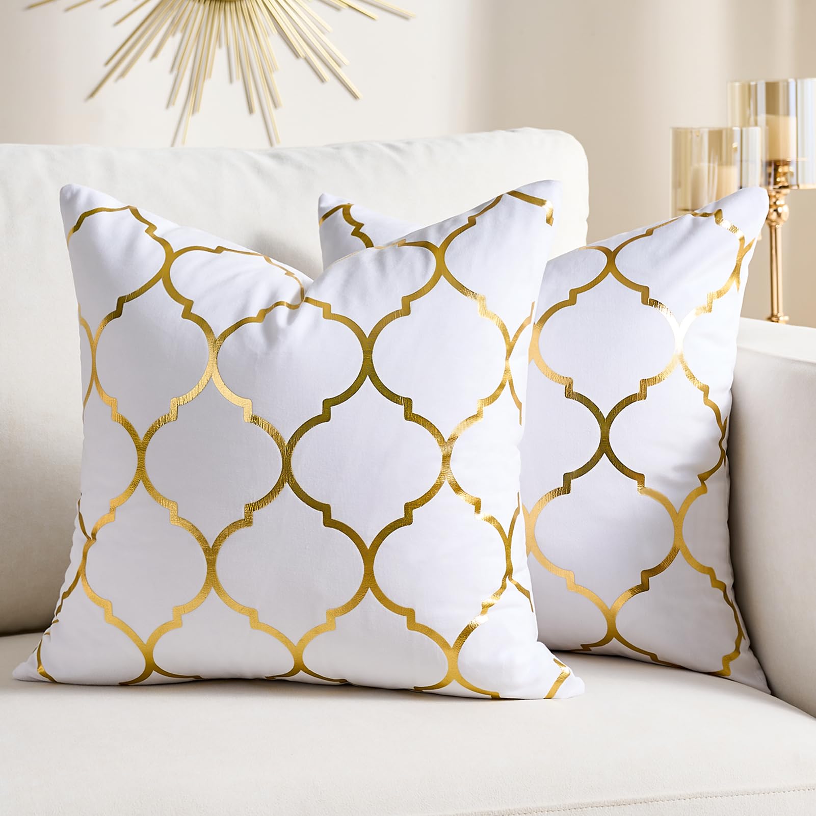 Wosendy Modern Farmhouse Pillow Covers White 18x18 Decorative Gold Velvet Throw Pillow Covers 2 Pack Outdoor Throw Pillows Boho Home Decor for Bedroom|Home & Garden