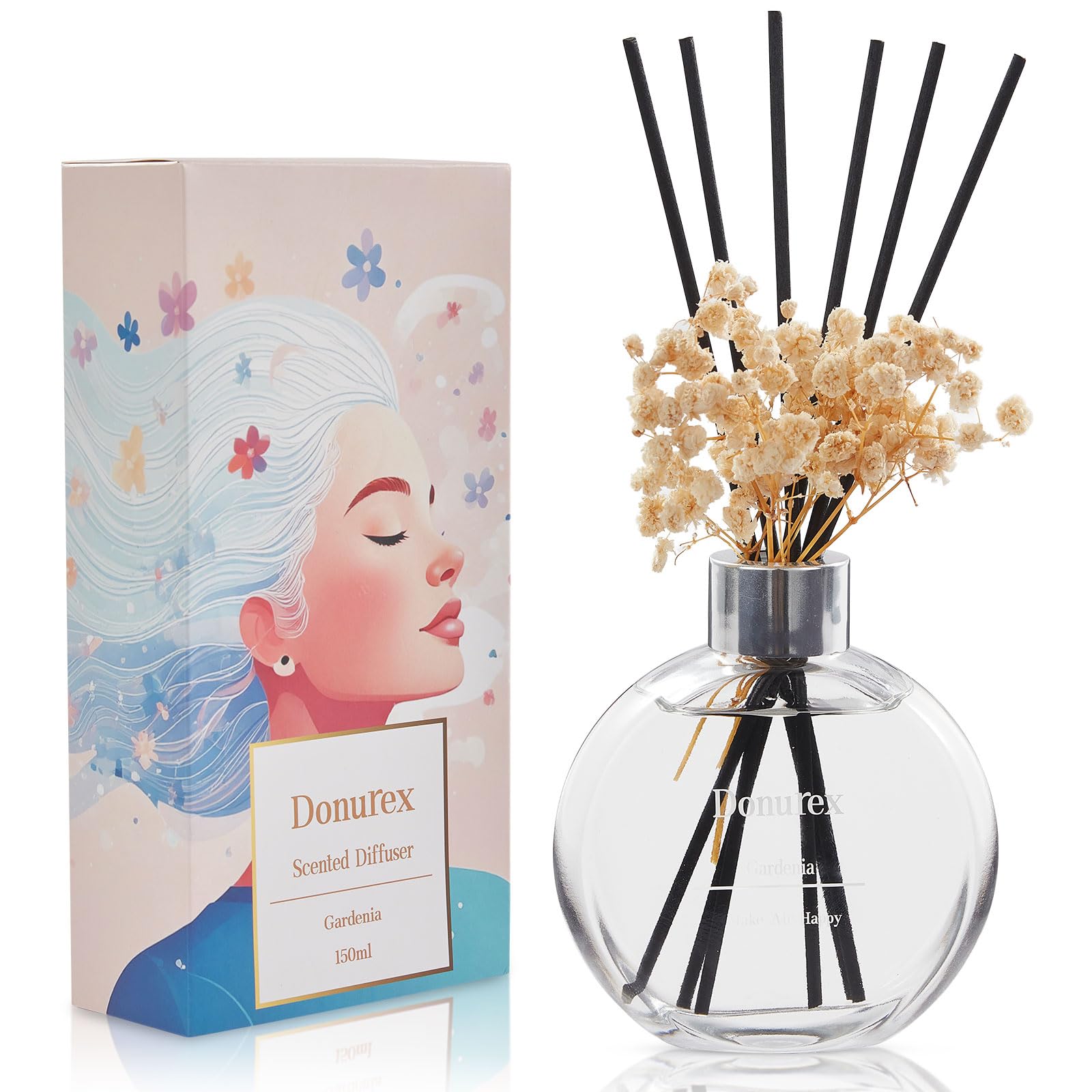 Donurex Flower Reed Diffuser Set 5.07oz Gardenia Scent Diffuser with Sticks Home Fragrance Reed Diffuser for Bathroom Shelf Decor|Home & Garden