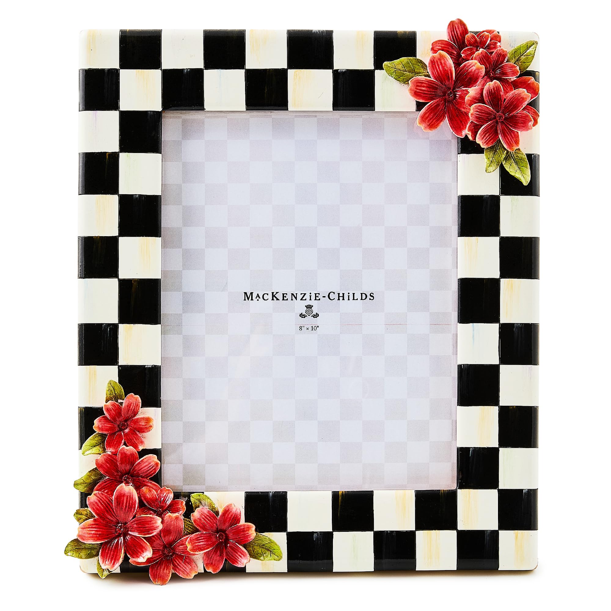 MACKENZIE-CHILDS Resin 8" x 10" Frame, Cute Picture Frame, Black-and-White Courtly Check Floral|Home & Garden