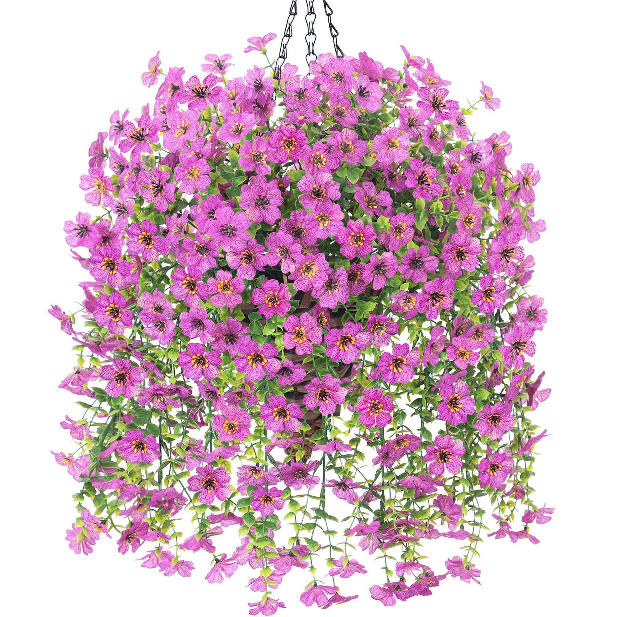 HyeFlora Artificial Hanging Flowers Basket for Outdoor, Fake Flowers Faux Plants Look Real for Yard Gardens Porch Patio Home (Purple)|Home & Garden