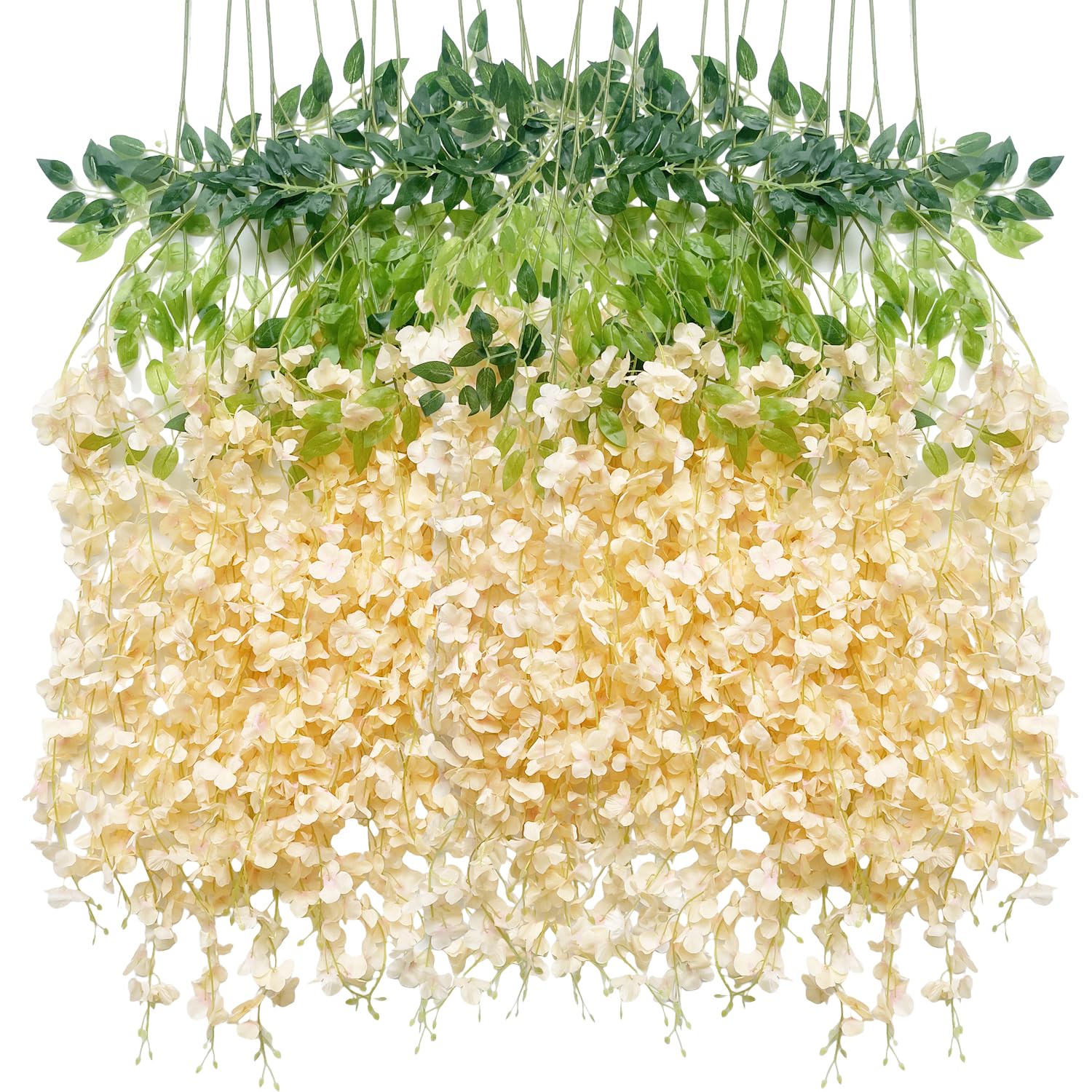 Artificial Flowers Hanging Flowers, Fake Wisteria Flower Garland Silk Vines Rattan String Decor for Home Wedding Arch Wall Garden Greenery Bedroom|Home & Garden