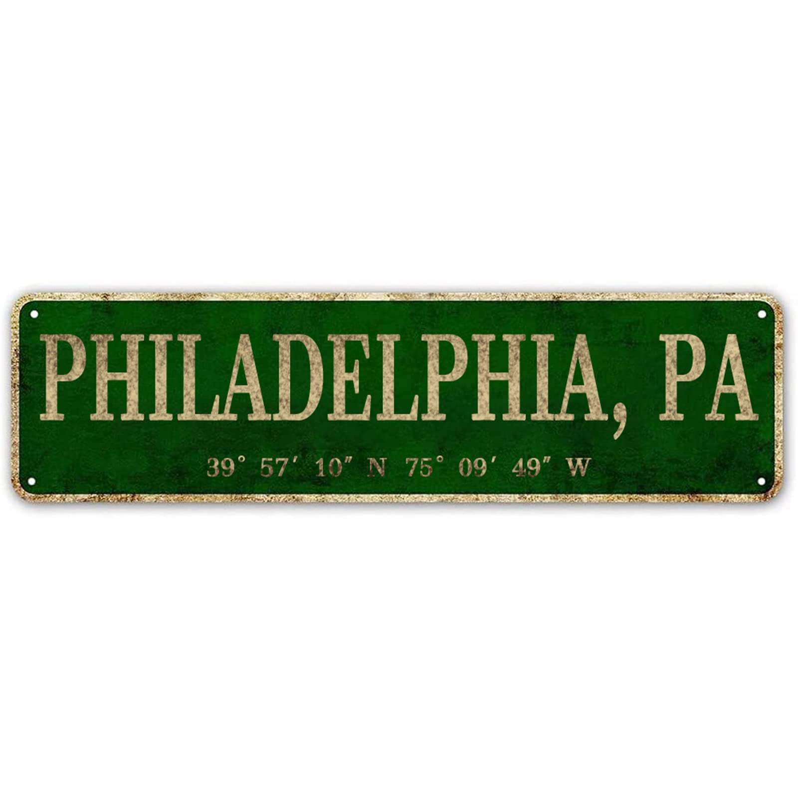 LINStore Philadelphia, PA City Sign Vintage Metal Wall Art Office/Home/Classroom Decor 4” x 16”|Home & Garden