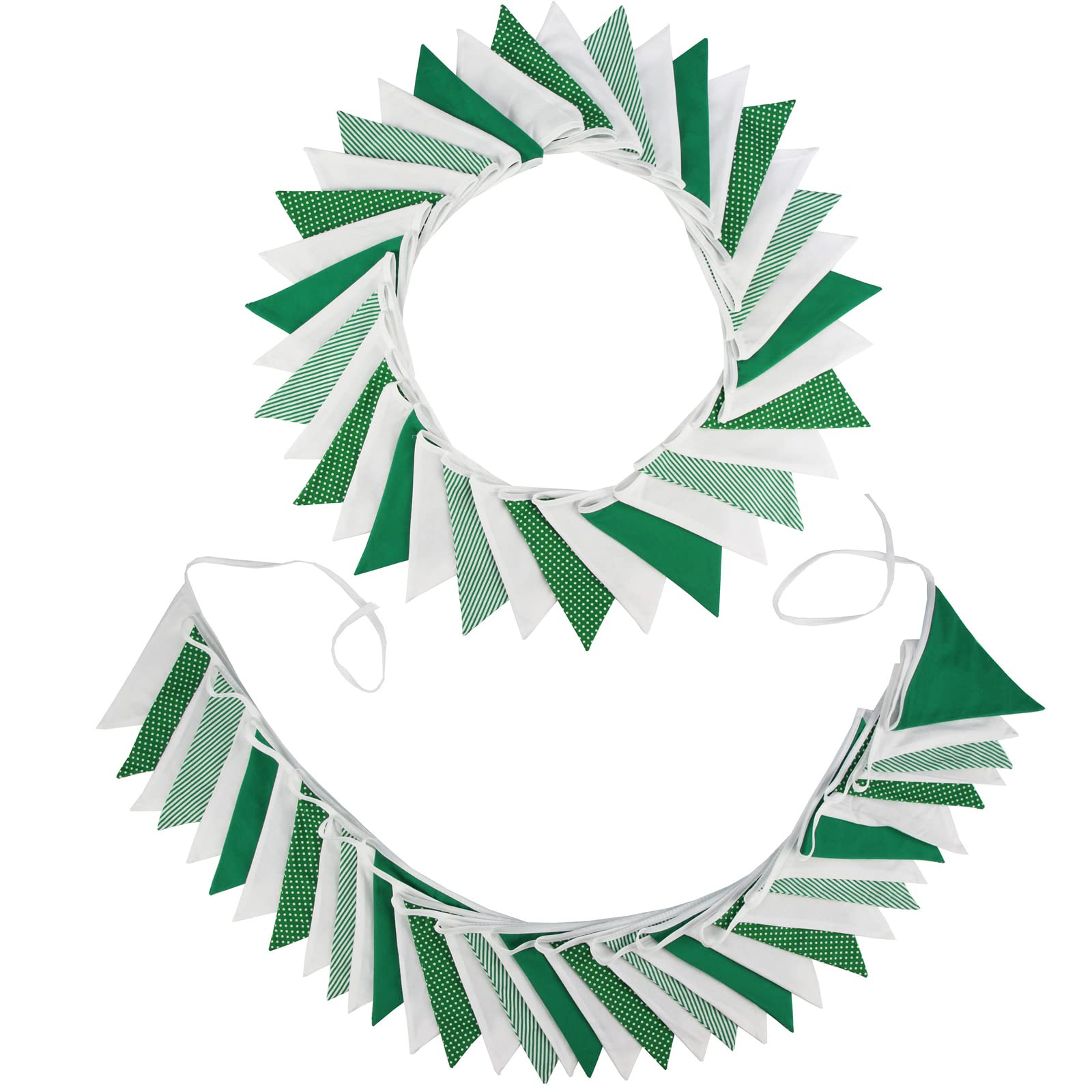 Zwiebeco 32Ft Green White Stripe Dot Fabric Bunting Banner Triangle Flags Cotton Garland Pennant for Birthday Wedding Baby Shower Hen Spring Tea Party|Home & Garden