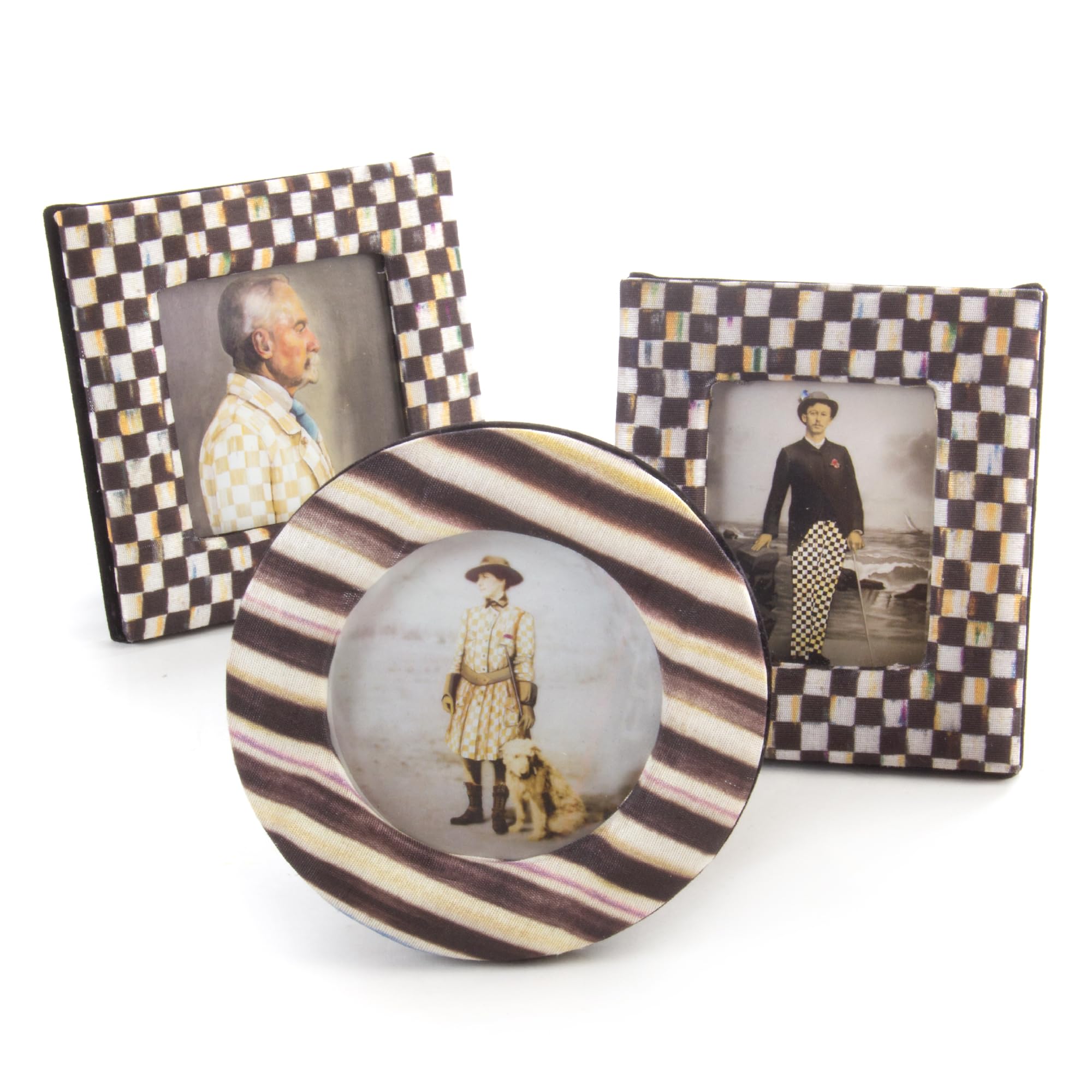 MACKENZIE-CHILDS Courtly Frames Gift Set, Cute Picture Frame Set, Round, Square, and Rectangular Photo Frames, Set of 3|Home & Garden