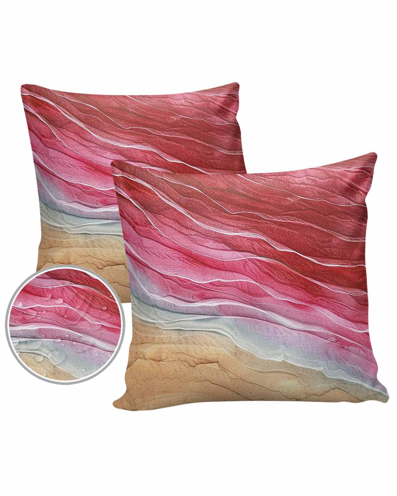 Allhomc Outdoor Pillows Throw Pillow Covers 16x16 Inch, Ocean Waves Rose Red Waterproof Decorative Pillow Covers, Ombre Beach Polyester Garden Cushion|Home & Garden