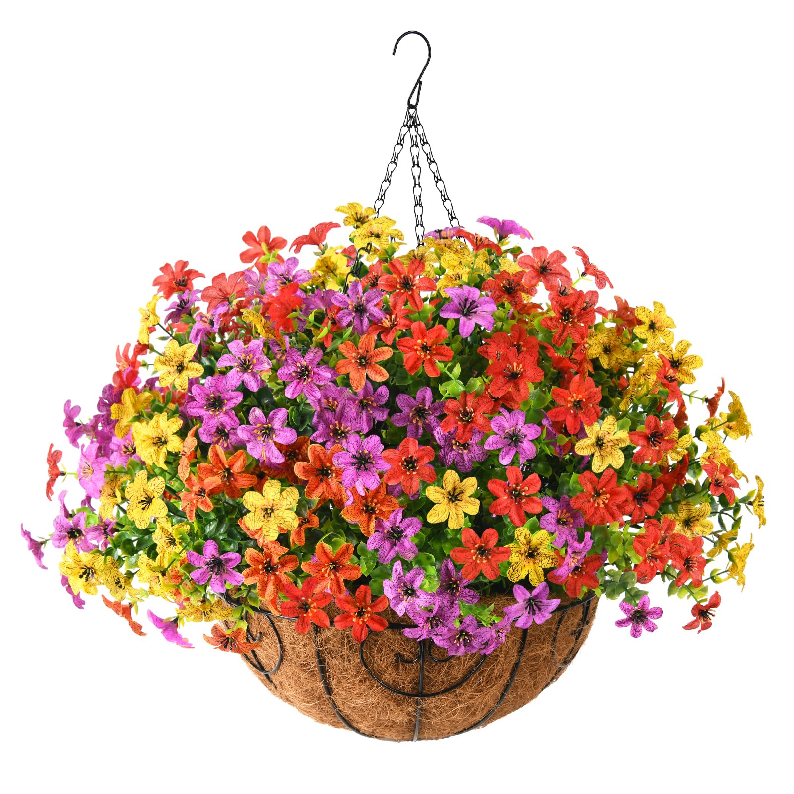 INQCMY Artificial Flowers Hanging Baskets for Outdoors Spring Decor, 12 Bundles Fake Plants Faux Silk Daisy with Eucalyptus Stem UV Resistant for|Home & Garden