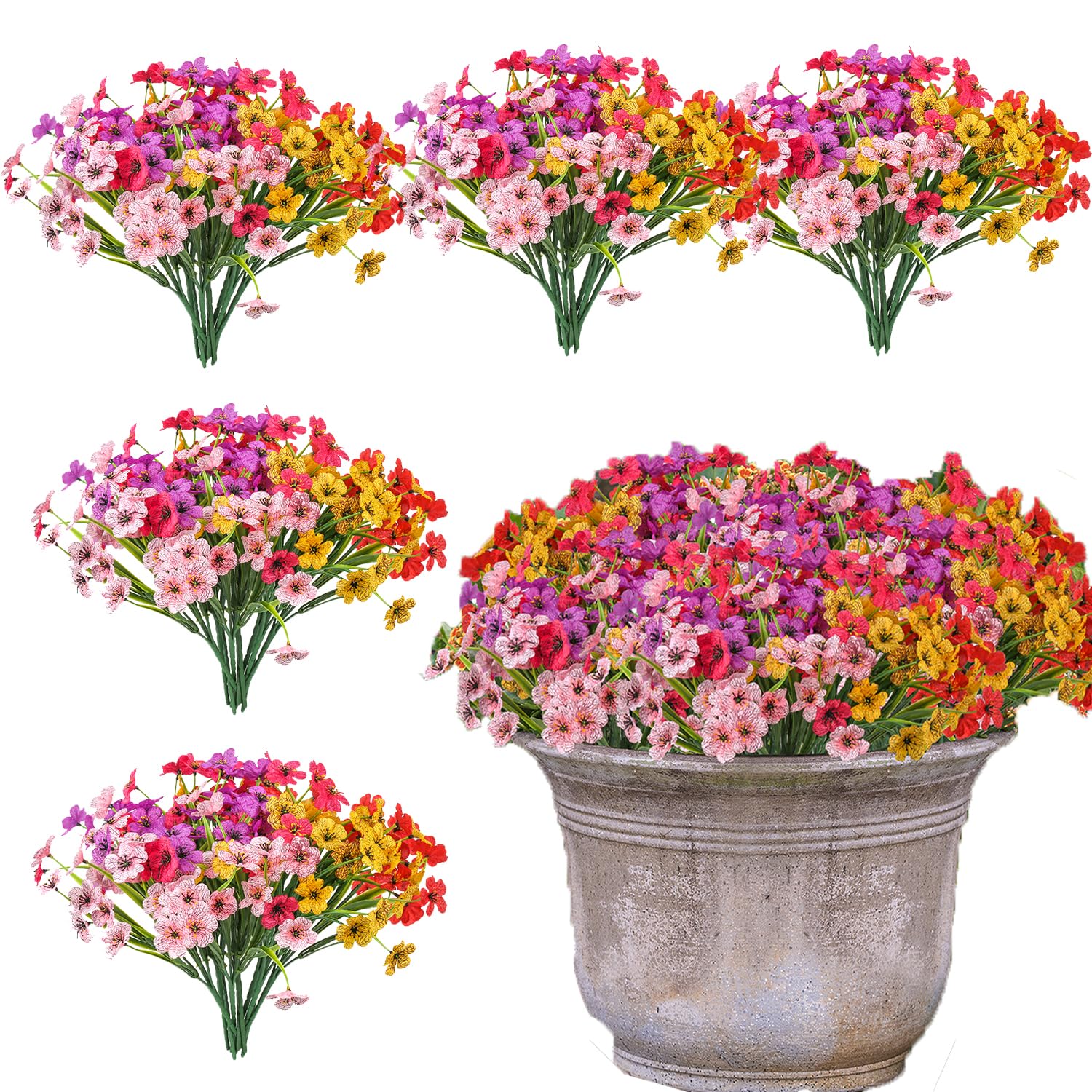 Doment 50 Bundles Artificial Flowers Outdoor Spring UV Resistant Fake Monkey Grass Daisy Flowers for Garden Porch Window Box Outside Decor (Onion)|Home & Garden