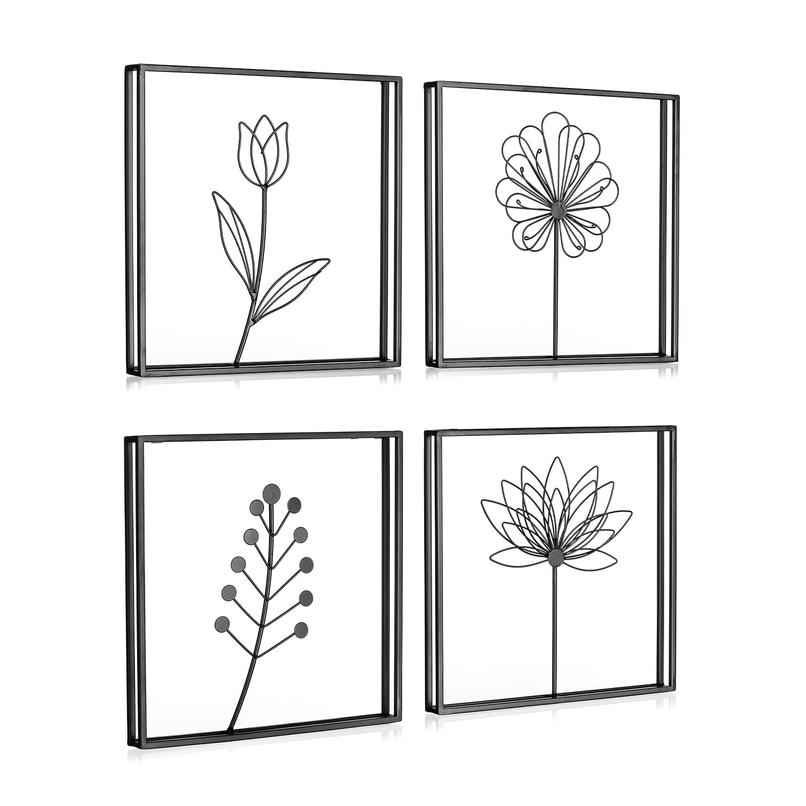 Walasis Black Modern Wall Decor - Iron Minimalist Wall Art for Living Room Flower Metal Line Wall Decorations Set for Bedroom Floral Leaf Wall|Home & Garden