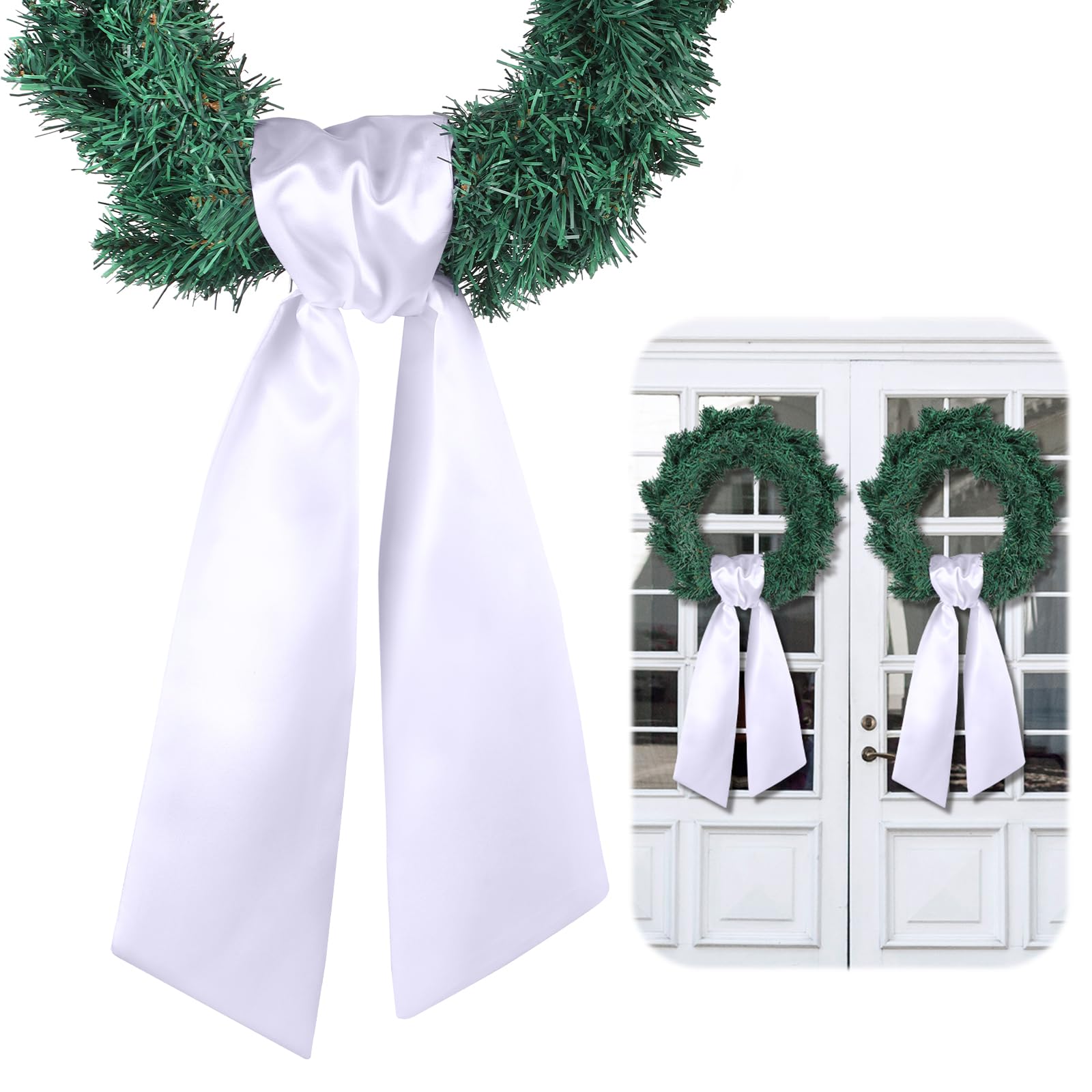 VitalCozy 2 Pcs Wreath Sash for Front Door Plain Sash for Embroidery Monogram Wreath Accessories for Xmas Party Farmhouse Doorway Indoor Outdoor Decor|Home & Garden