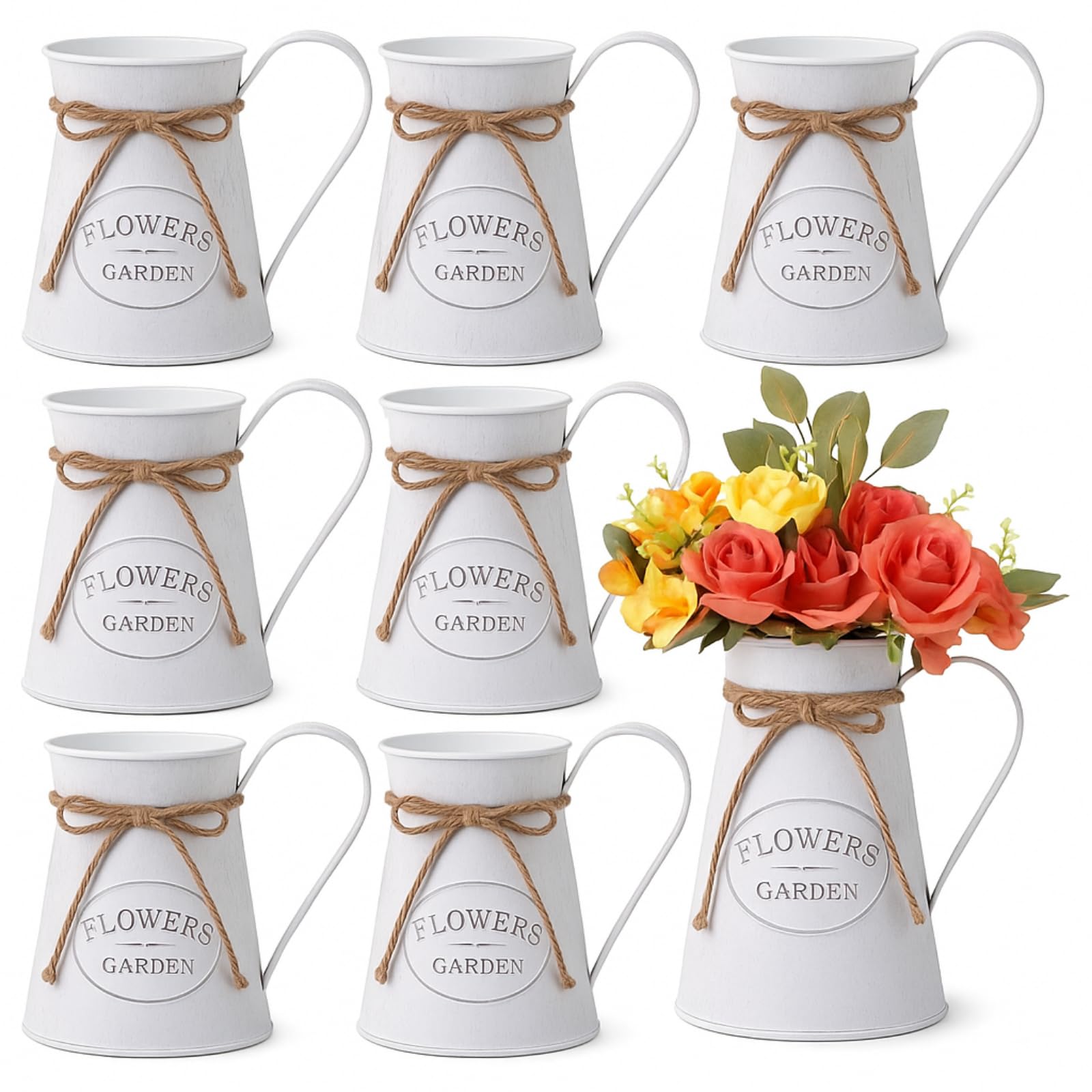 Chumia 8 Pcs Metal Pitcher Jug Vase for Flower Farmhouse Rustic Milk Can 7. 87 Inch Flower Vintage Vase Pitcher Decor Kitchen Bathroom Decor for Home|Home & Garden