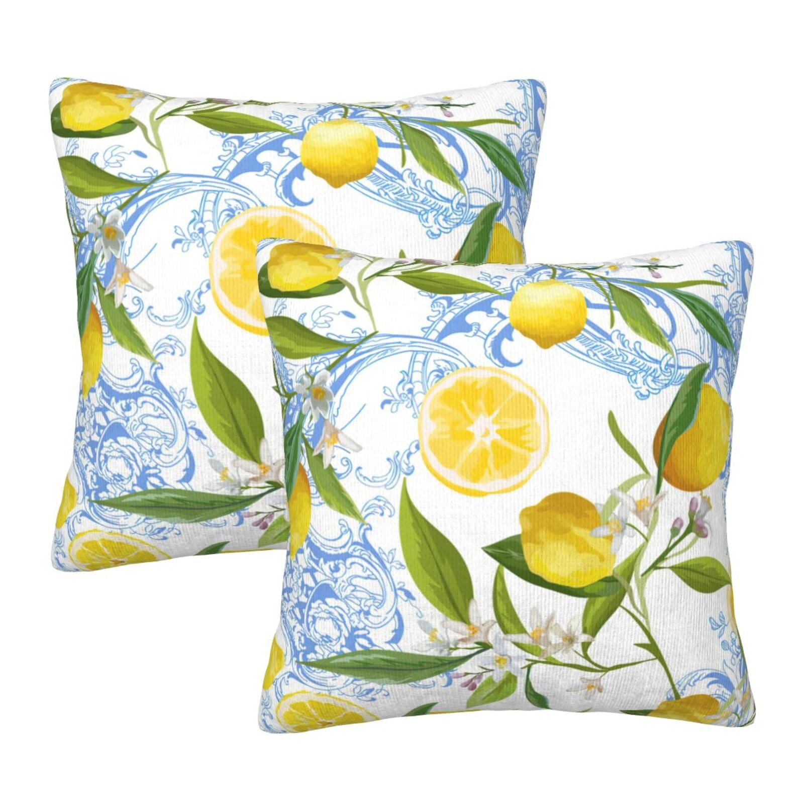 Lemon Pillow Covers 18x18 Inch Set of 2 Summer Tropical Palm Leaves Flowers Decorative Throw Pillow Cover Yellow Fruit Cushion Cover Blue White Pillow|Home & Garden