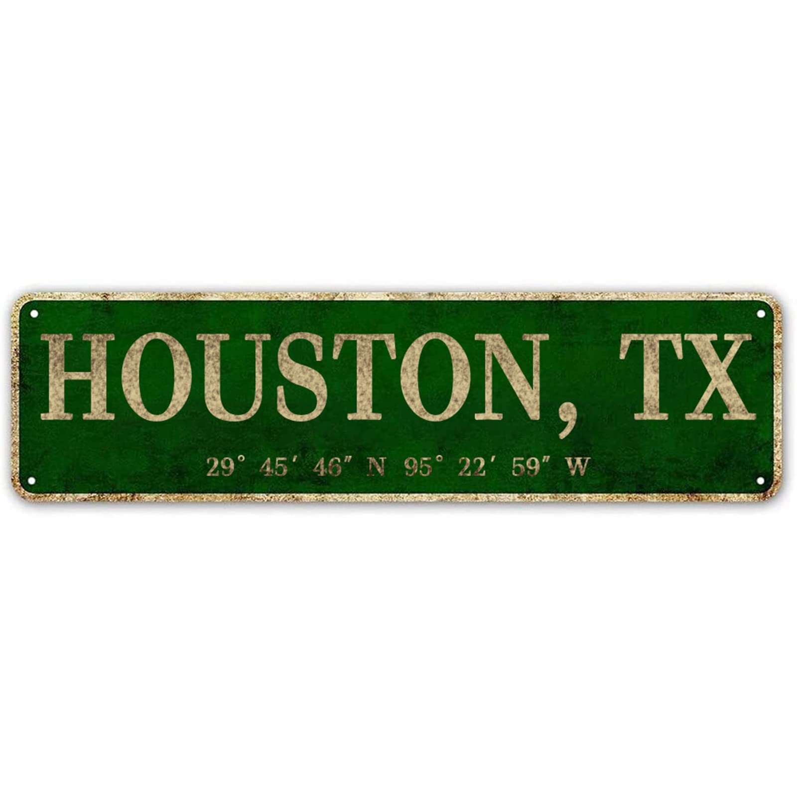 LINStore Houston, TX City Sign Vintage Metal Wall Art Office/Home/Classroom Decor 4” x 16”|Home & Garden