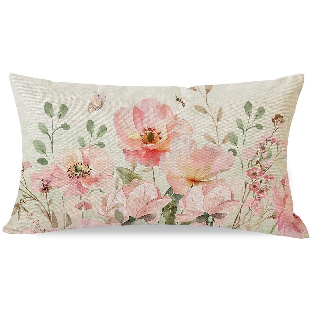 PANDICORN Spring Pink Flower Wildflower Throw Pillow Cover 12x20 Inch Watercolor Floral Outdoor Rustic Farmhouse Summer Decor Porch Lumbar Decorative|Home & Garden