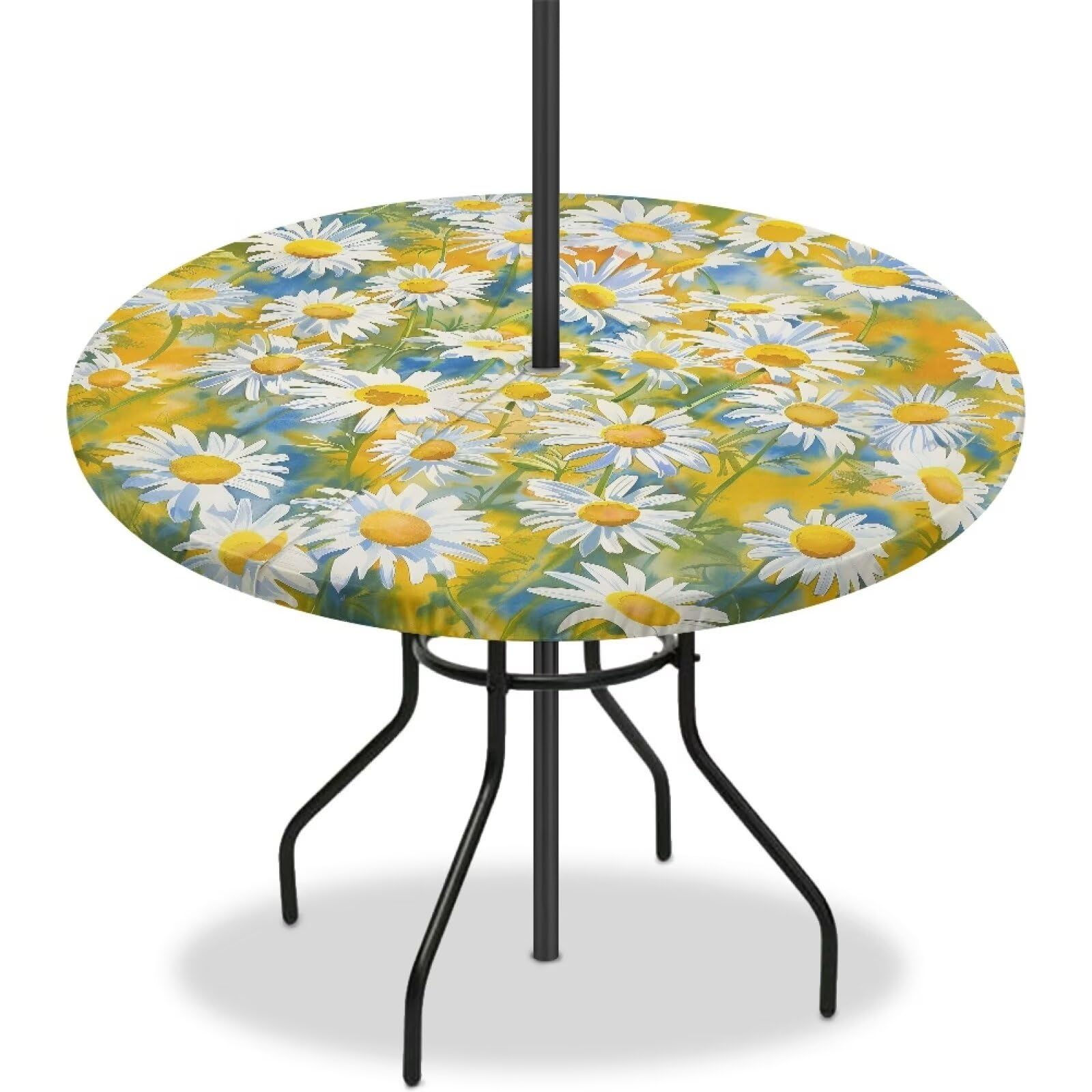 Goronwyfloyd Daisy Outdoor Tablecloth with Hidden Zipper and Umbrella Hole Waterproof Round Fitted Tablecloth Round Cover for Picnic, Patio, Garden|Home & Garden