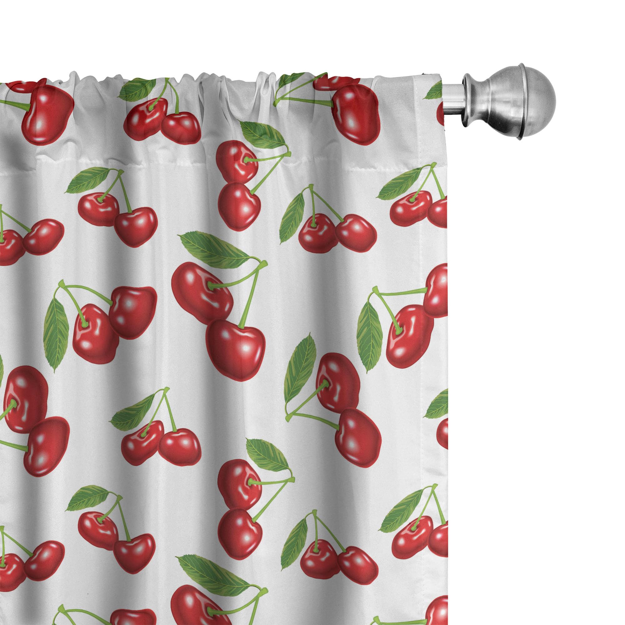 Ambesonne Fruit Window Curtains, Cherry Design Fresh Berry Fruit Summer Green Garden Macro Digital Print, Lightweight Decor 2-Panel Set with Rod|Home & Garden