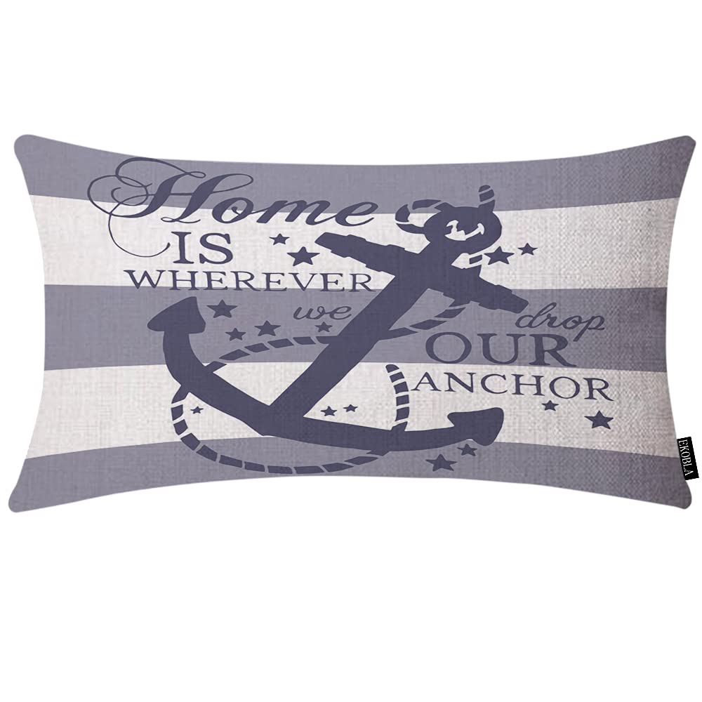 EKOBLA Nautical Pillow Covers Home is Wherever We Drop Our Anchor Waist Lumbar Cotton Linen Cushion Cover Oblong Rectangle Pillowcase for Men Women|Home & Garden