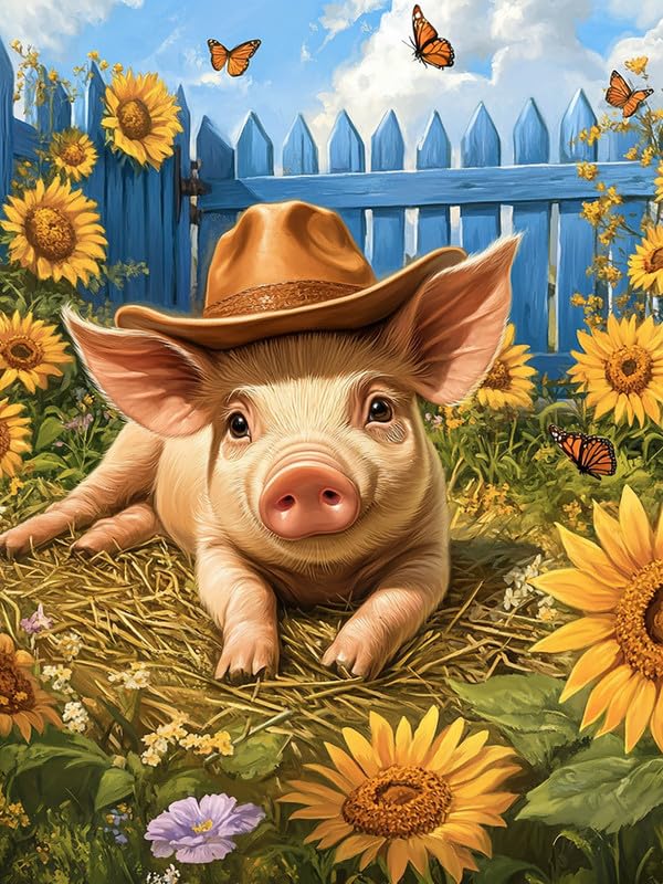 Bimkole 5D Diamond Art Kits for Adults Pig Animal, Full Drill DIY Rhinestone Embroidery Set Paint with Diamonds Art Sunflowers by Number Kits Cross|Home & Garden