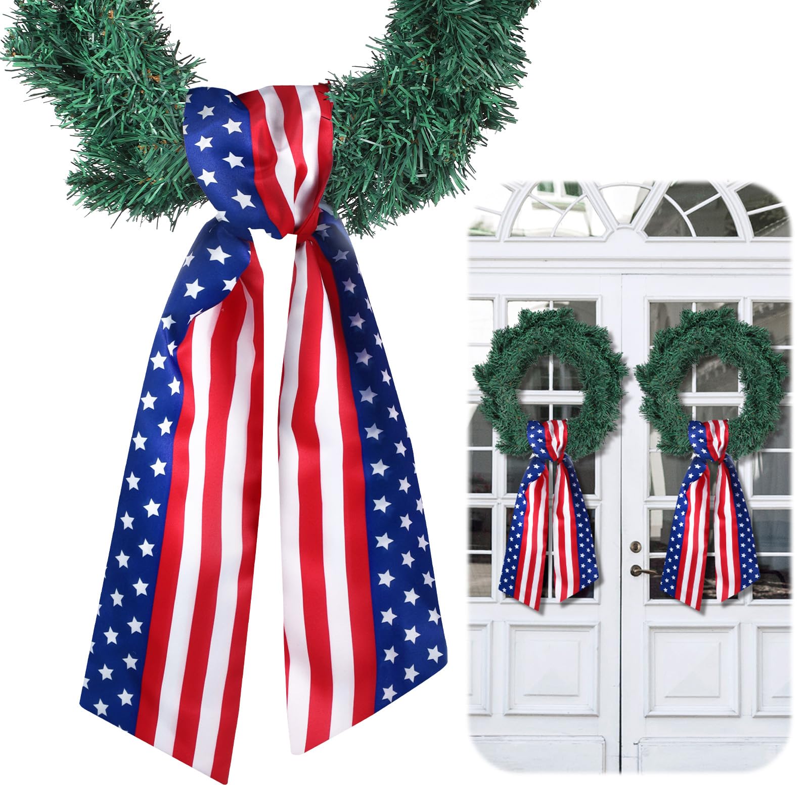 VitalCozy 2 Pcs Wreath Sash for Front Door Wreath Sash Garland Ribbon Accessories for Embroidery Monogram Outdoor Indoor Xmas Party Yard Doorway 4.5"|Home & Garden