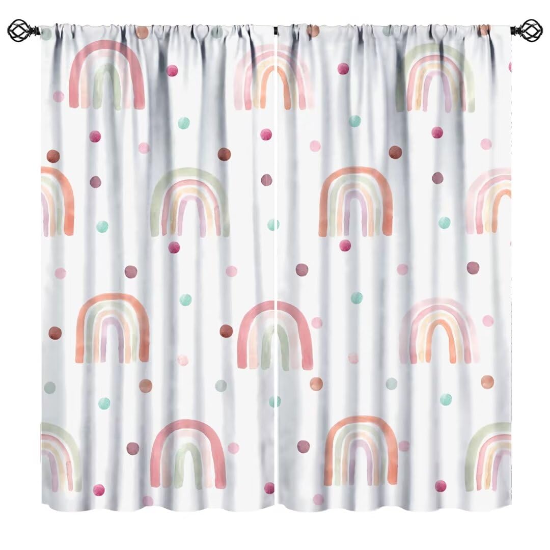 JanJCurt Boho Rainbow Curtains, Pink Blue Polka Dot Window Drapes for Kids Girls Abstract Modern Collage Geometric Aesthetic Window Treatments for|Home & Garden