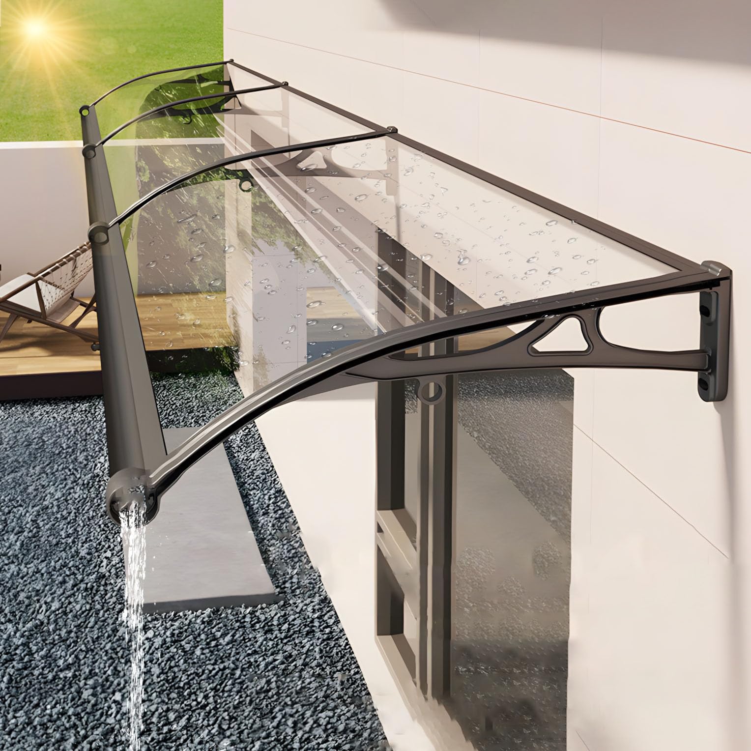 Awnings for Doors, Exterior Window Awnings with Aluminum Alloy Bracket, Easy to Install, Rain and Snow Proof, Polycarbonate Front Door Canopy, Front|Home & Garden